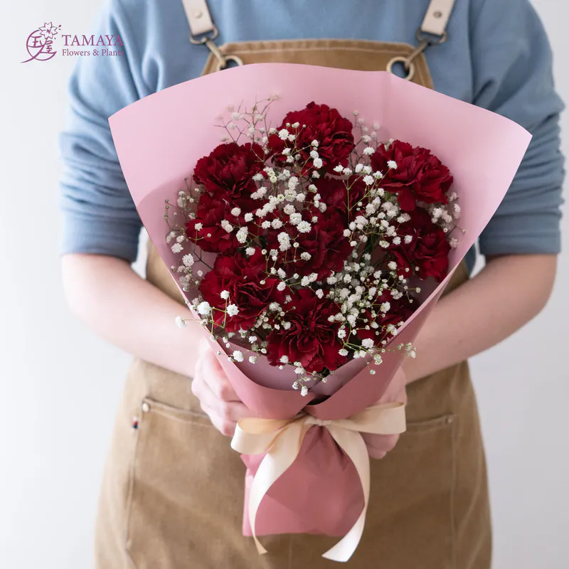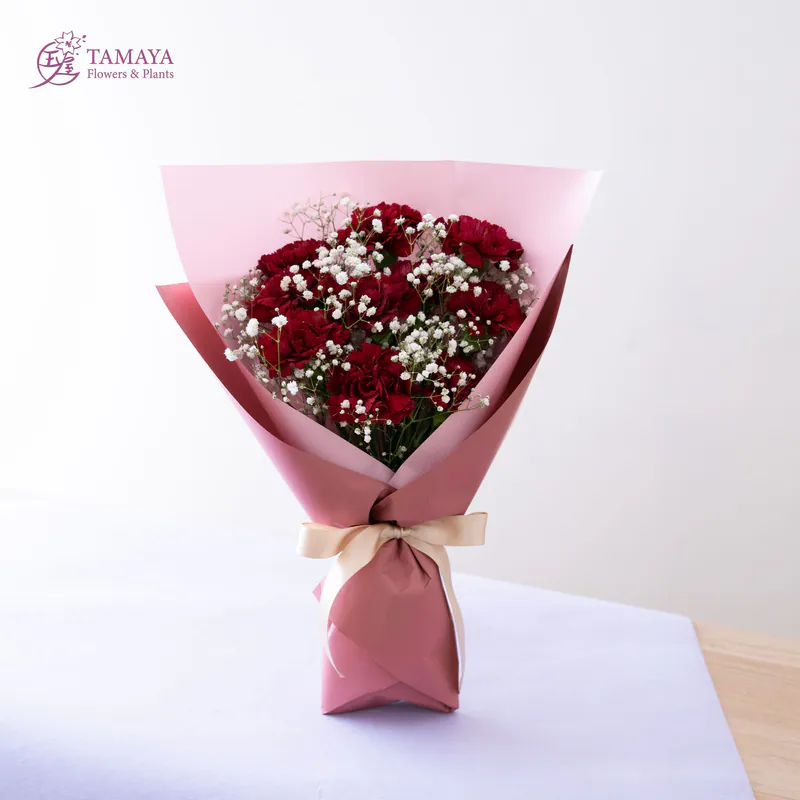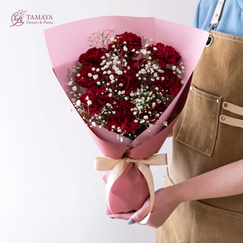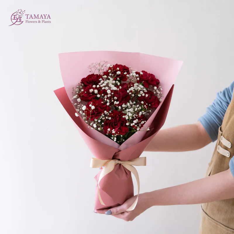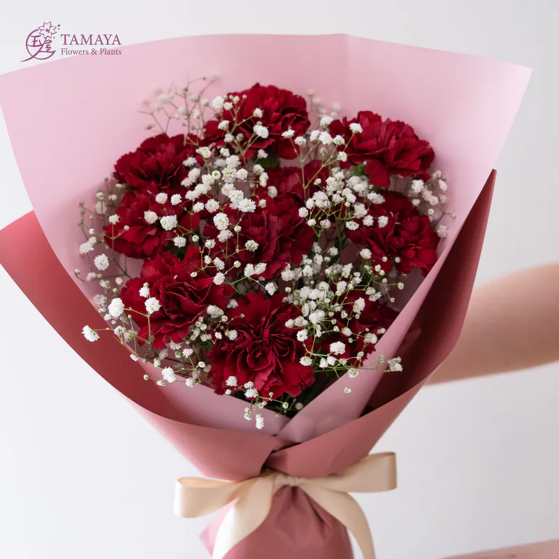 紅色的張揚與熱烈,搭配滿天星的經典花禮,