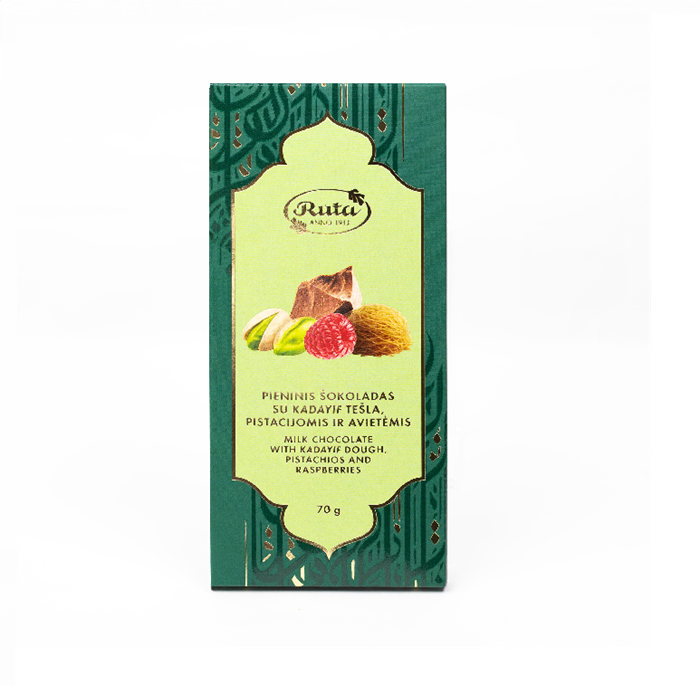 😍以香濃牛奶巧克力為基底,融合細緻的開心果風味、中東經典 Kadayif 酥皮與覆盆莓脆粒,創造出令人驚喜的多層次口感體驗