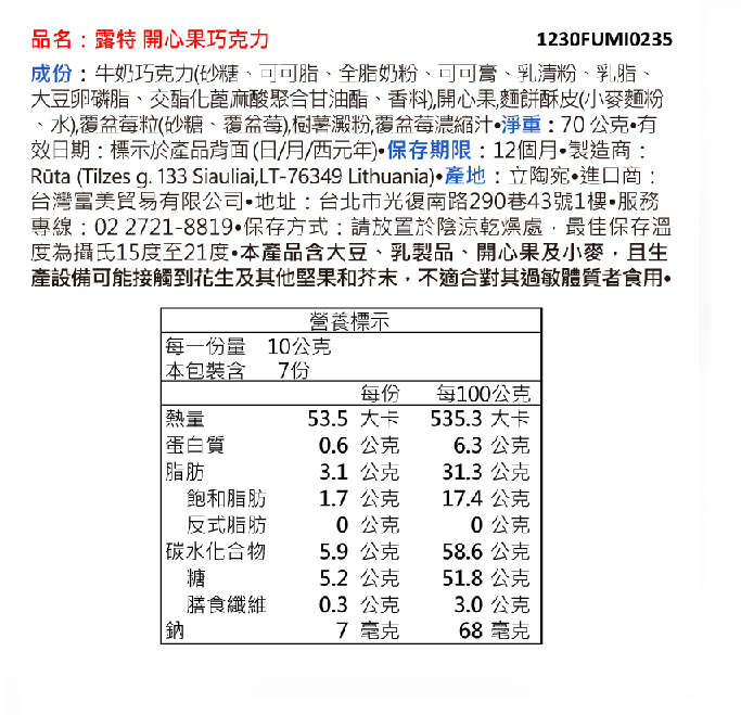 😍立陶宛百年國寶級巧克力(效期:2027/1/23)