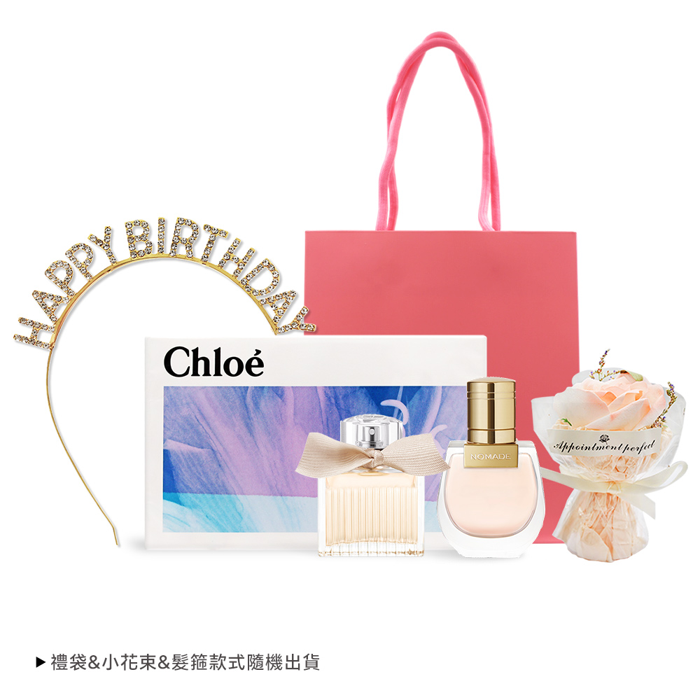-Chloe' 生日祝福 美好相隨-雙氛優雅舞曲禮盒[同名+芳心之旅](20mlX2) 附花束生日髮箍加禮袋