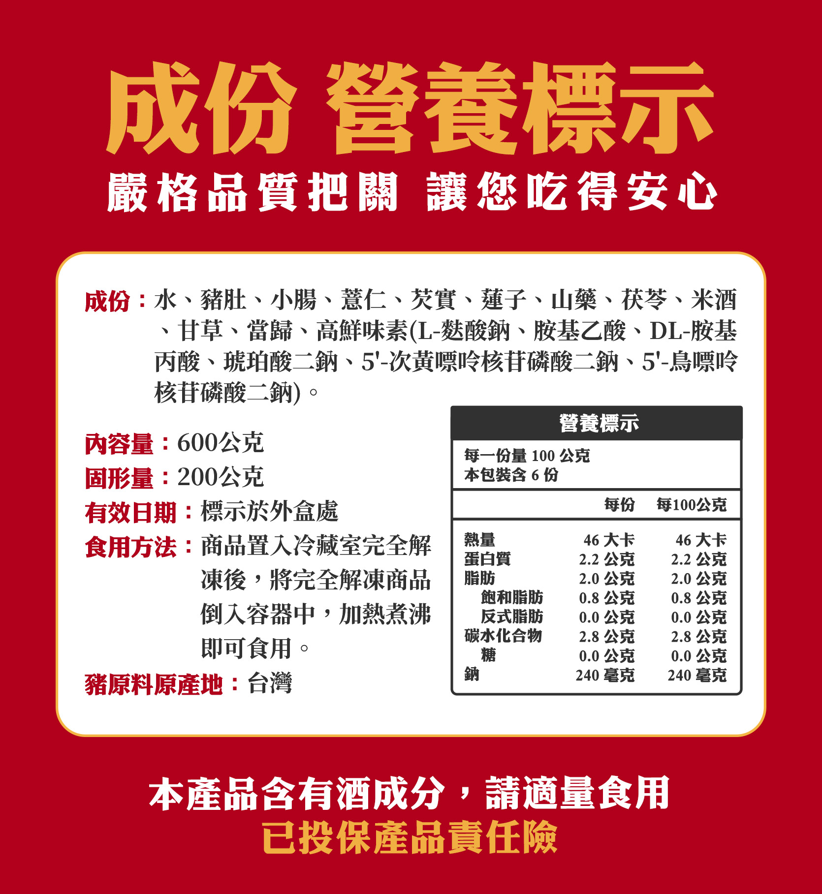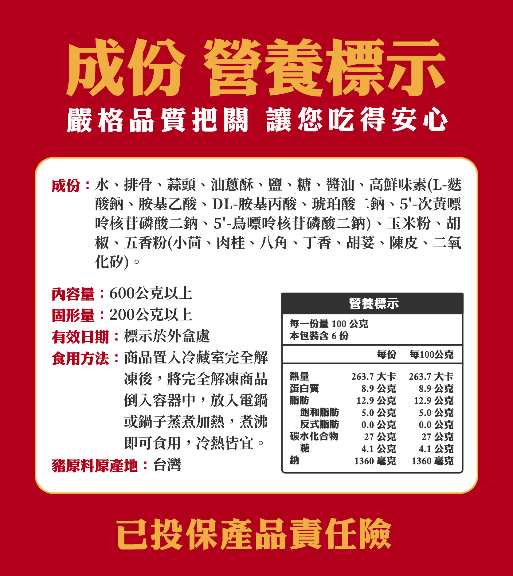 所有產品皆已投保產品責任險請您放心!保單號碼:131114AKP0000417。