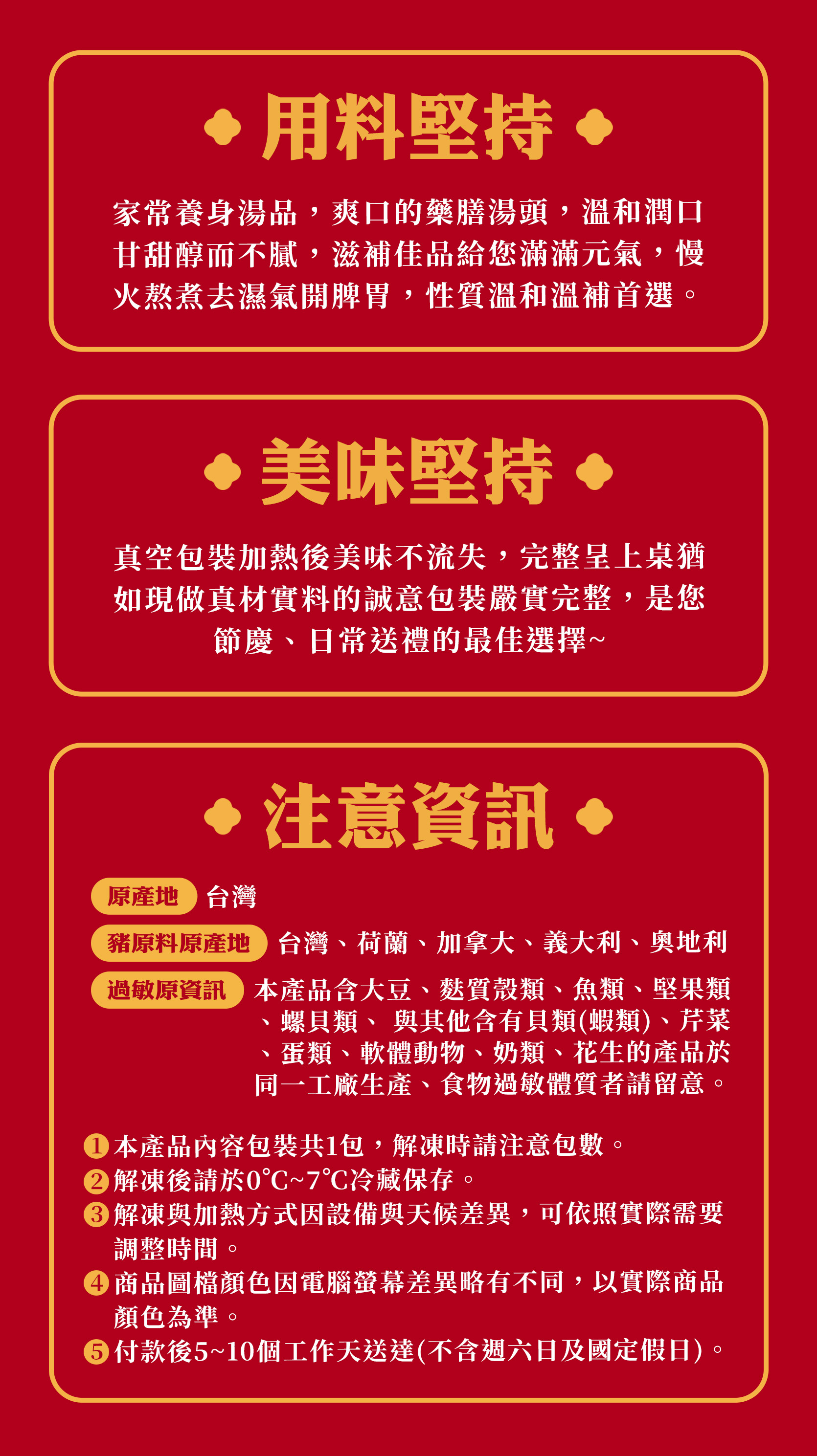 完成付款後3-7個工作天內送達(不含週六日及國定假日),若宅配公司遇上不可控制的交通因素可能會有提早或是延遲的狀況,若遇繁盛期(如農曆新年期間等)商品將可能延遲2~3日送達,不另行通知,期間商品將依冷凍全程完整保存,造成不便敬請見諒。