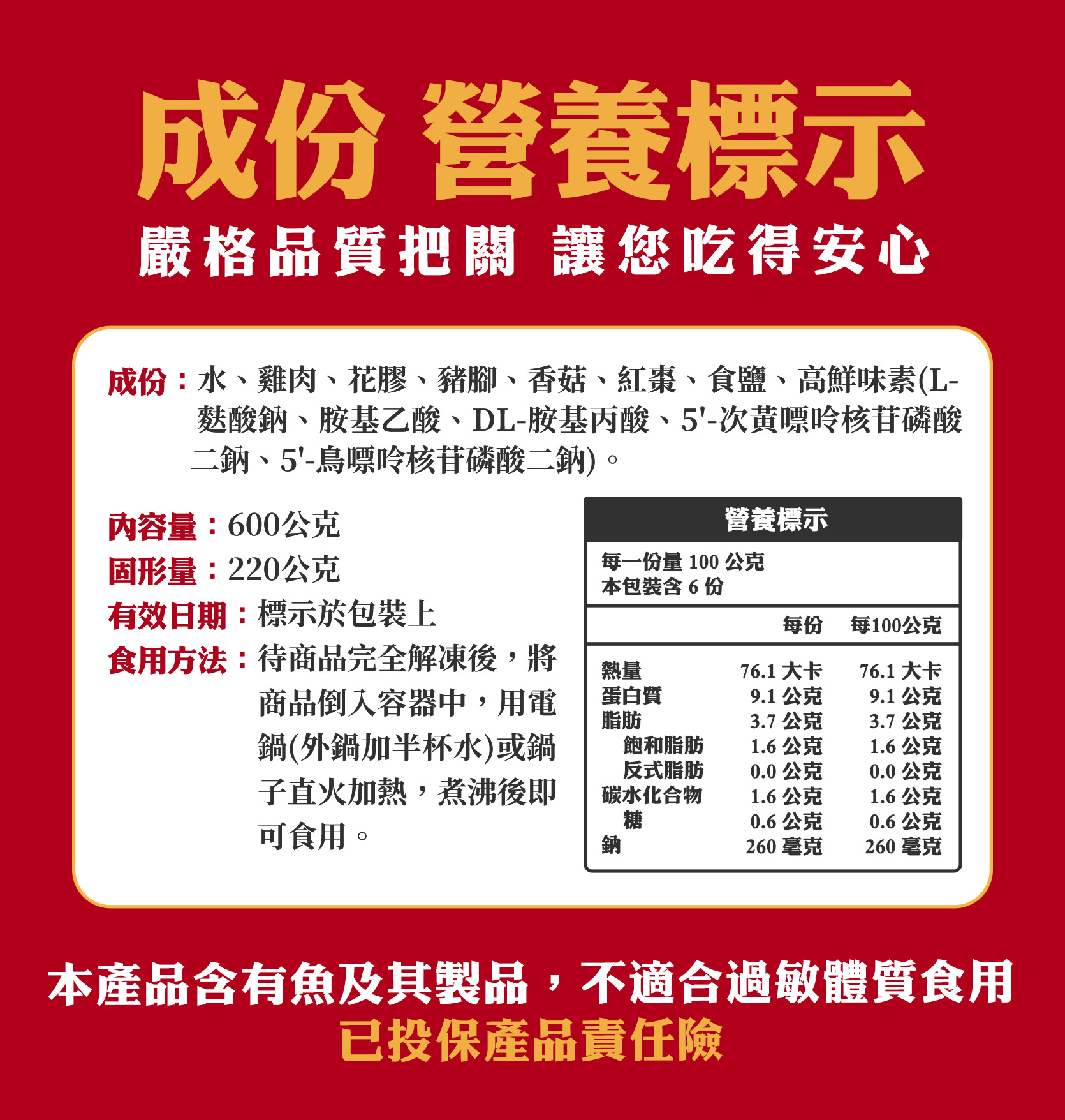 所有產品皆已投保產品責任險請您放心!保單號碼:131114AKP0000417。