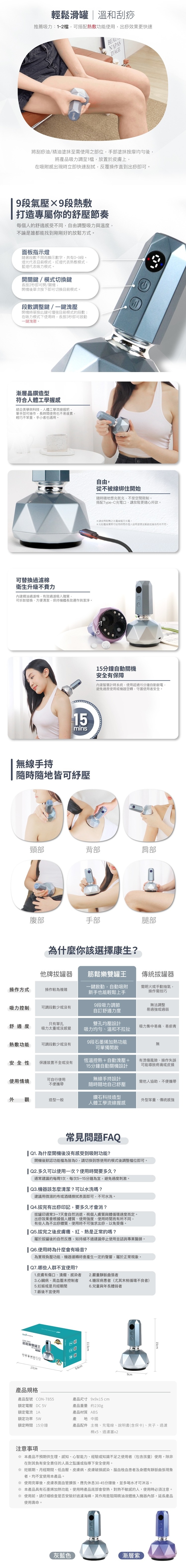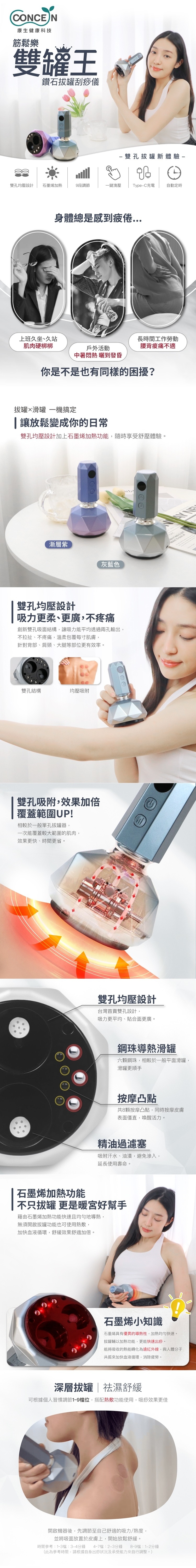 ★台灣獨家雙孔拔罐設計★石墨烯均勻加熱★長柄設計,新手長輩都能用★一鍵洩壓,不拉扯皮膚★無線手持,一鍵啟動