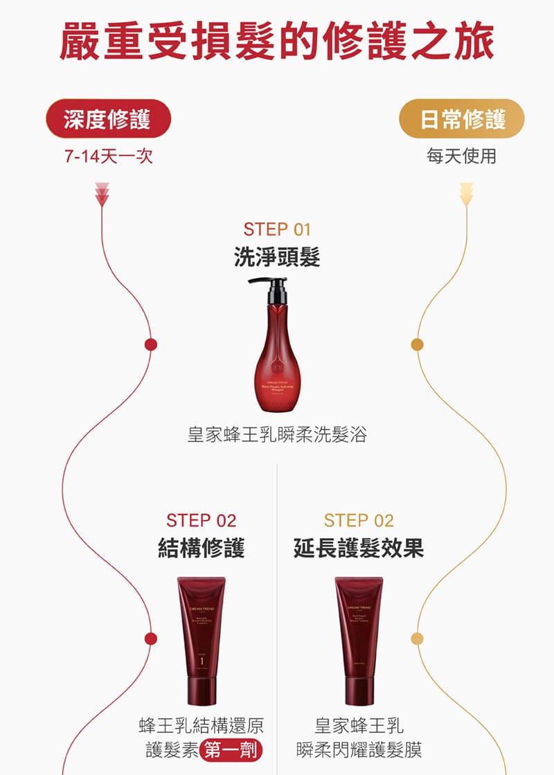 名稱:凱夢DREAM TREND 蜂王乳結構還原護髮系統(二劑式200ml )