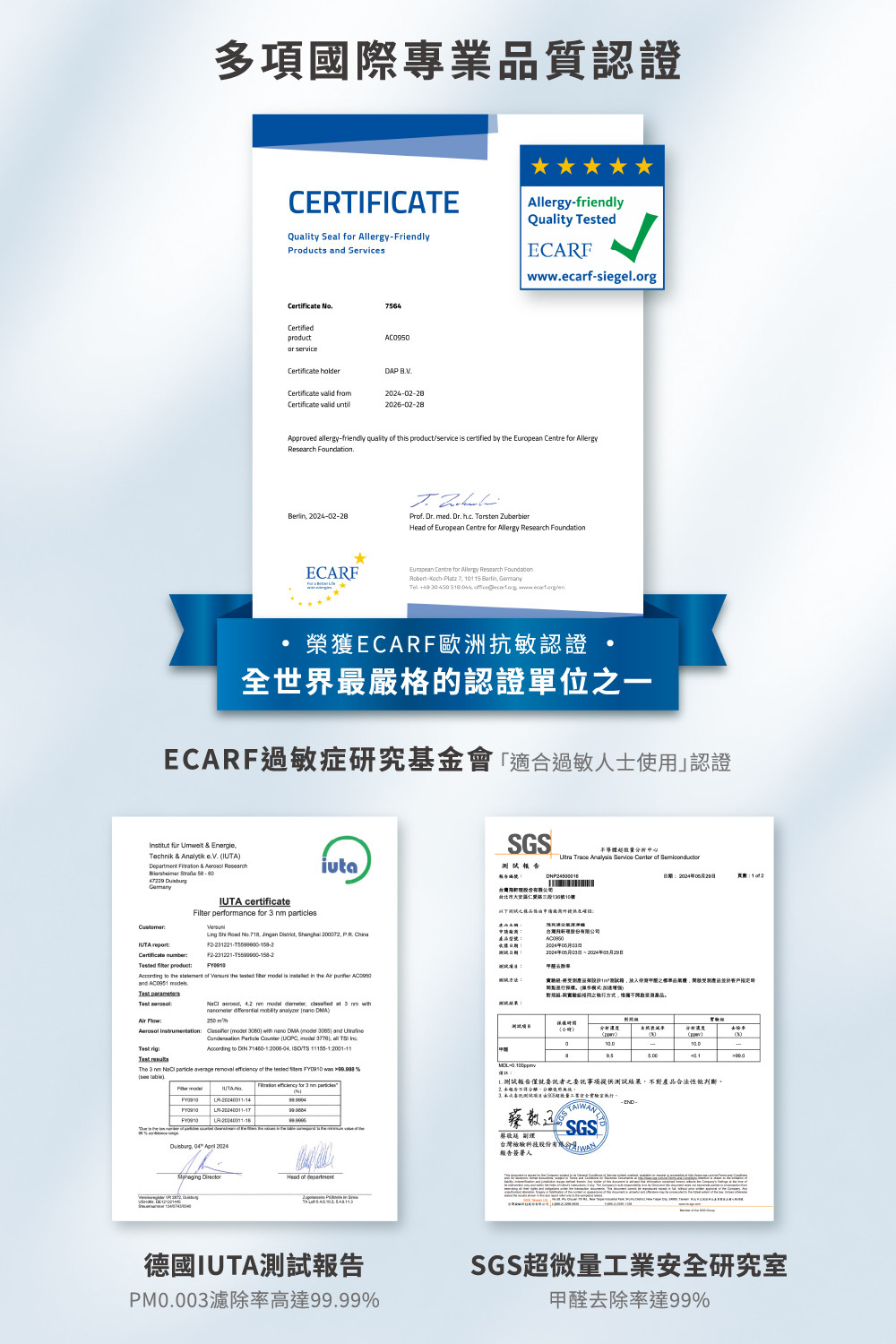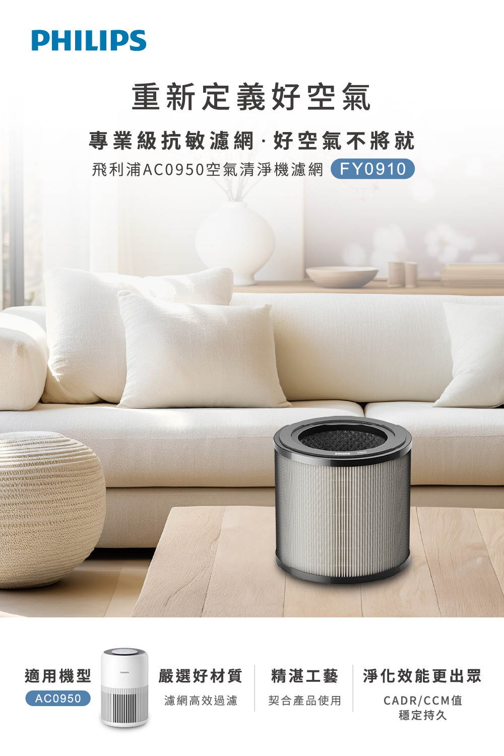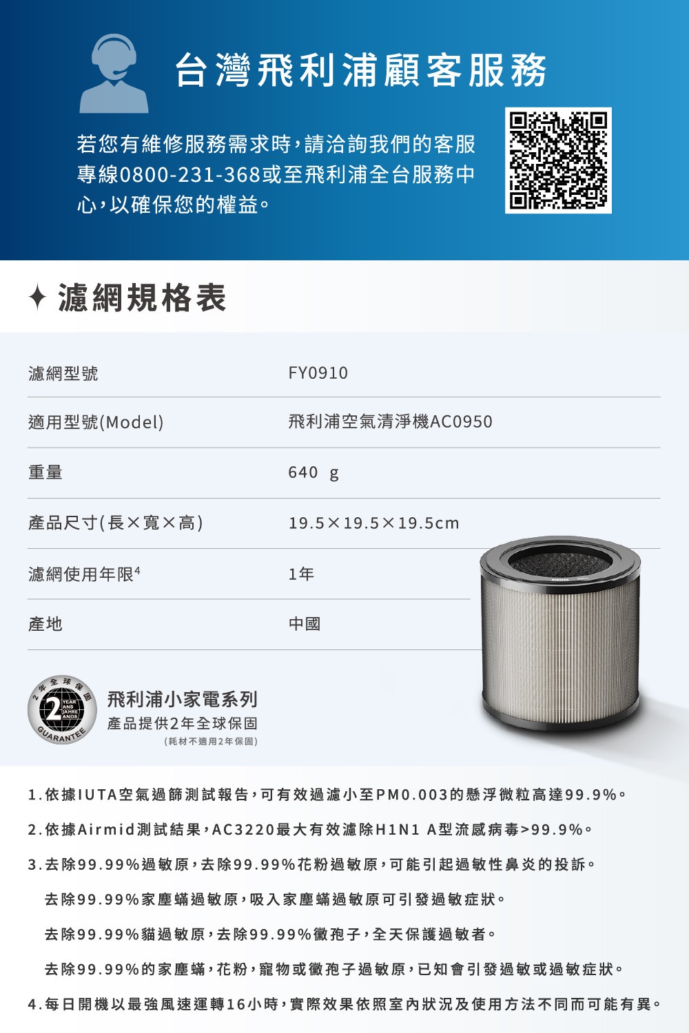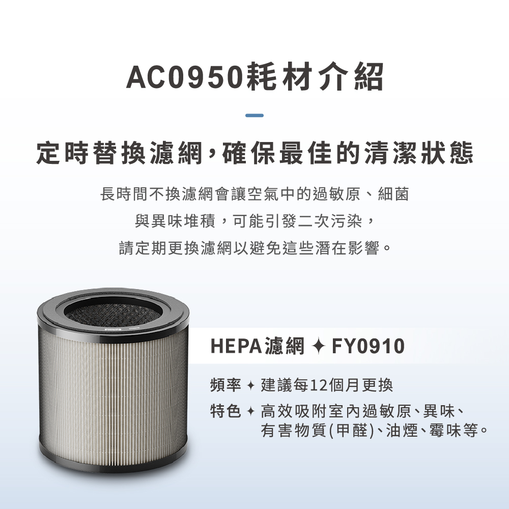 商品特色適用:AC0950奈米級勁護HEPA&活性碳複合式濾網 可有效過濾懸浮微粒 IUTA認證PM0.003濾除99.9% 建議每一年更換一次(依實際使用環境及頻率為準)商品規格