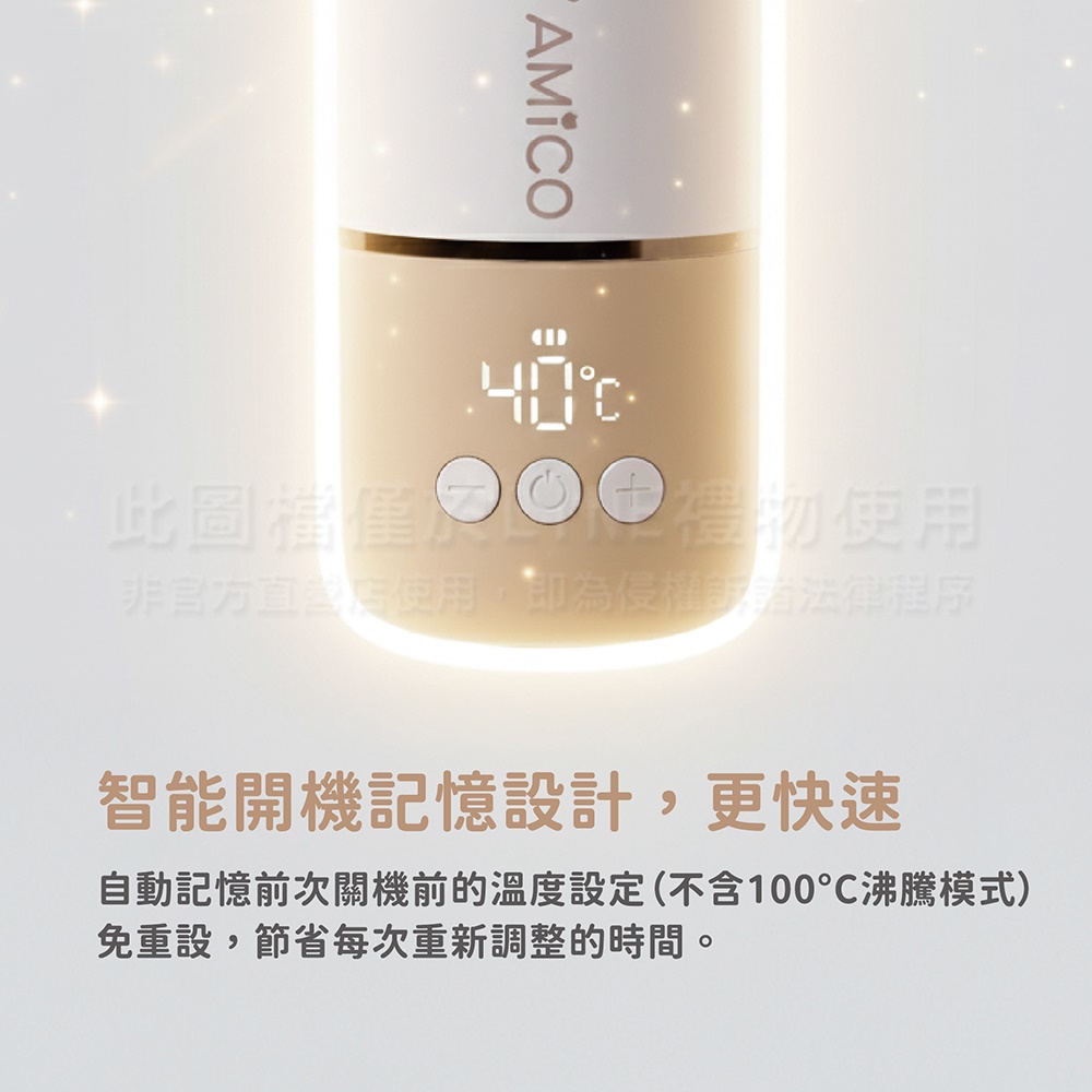 ●加熱至設定溫度後,自動啟動保溫,持續恆溫至關機或電量耗盡,外出也能安心備水