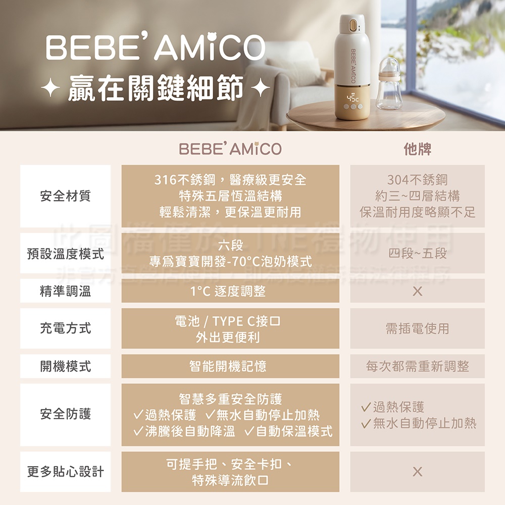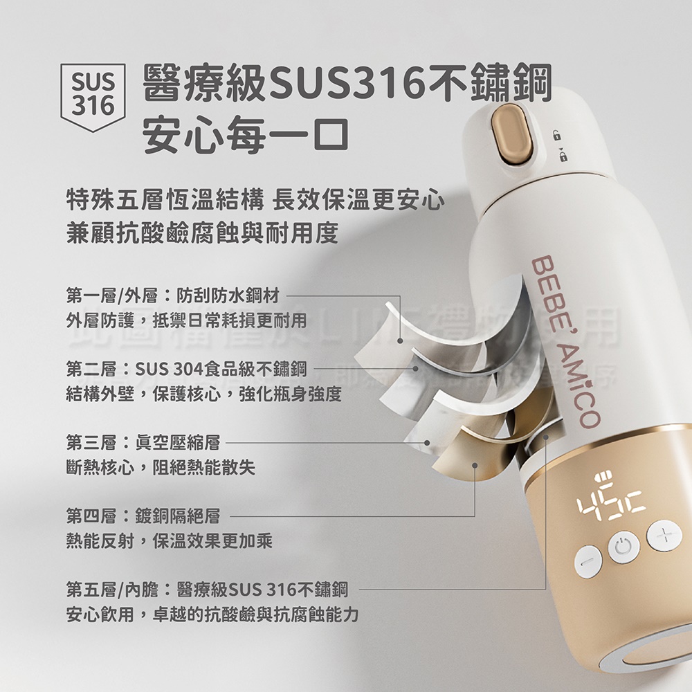 BEBE AMICO不鏽鋼智能溫控恆溫保溫瓶350ml