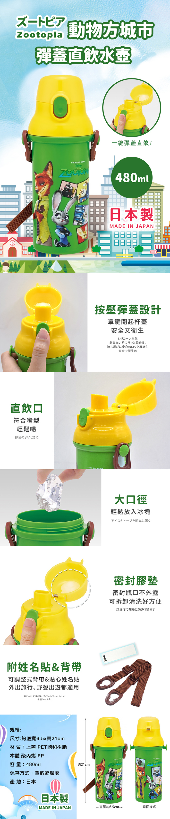 ●日本製 正版授權●不含雙酚A●超輕量彈蓋直飲隨身壺●外出旅行、野餐出遊適用●按壓彈蓋直飲式 寬口徑好放冰塊●附姓名貼紙、可拆式斜揹帶