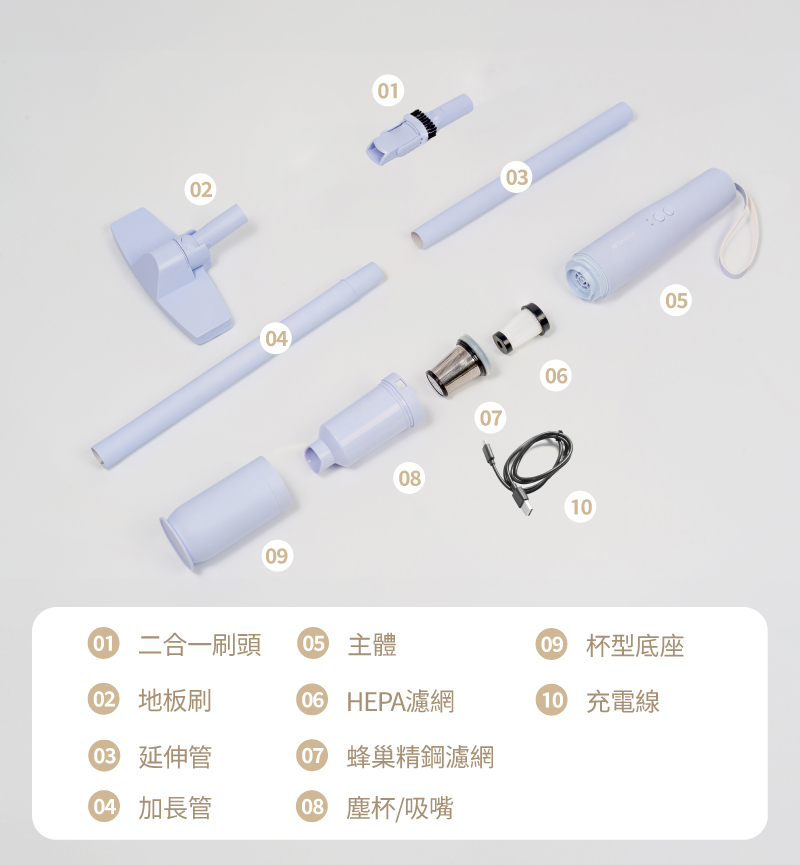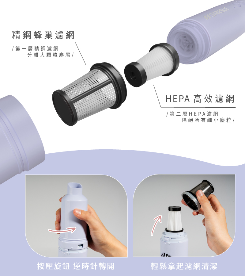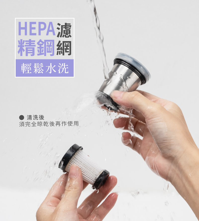 ● 520g 超輕超美型x無線輕巧好拿●蜂巢式精鋼濾網+HEPA濾網可水洗清潔●16000pa大吸力x8000無刷馬達