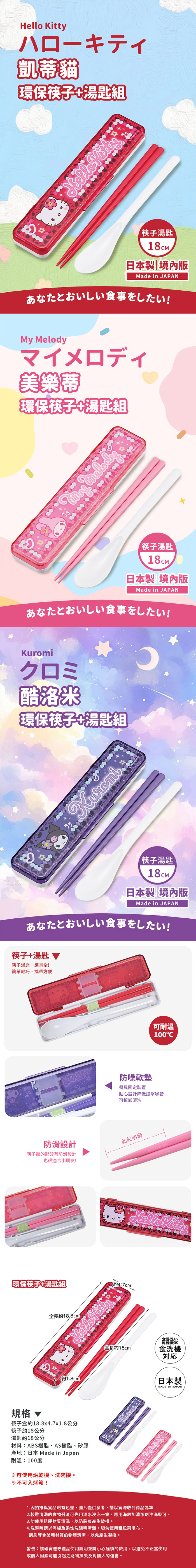 【百科良品】兒童嘉年華 禮物精選-日本製 三麗鷗 凱蒂貓 美樂蒂 酷洛米 閃耀鑽石 環保筷子+湯匙組 18CM(日本境內版) | NearMe | 線上送禮平台『獨家支援 收禮者改選禮物』