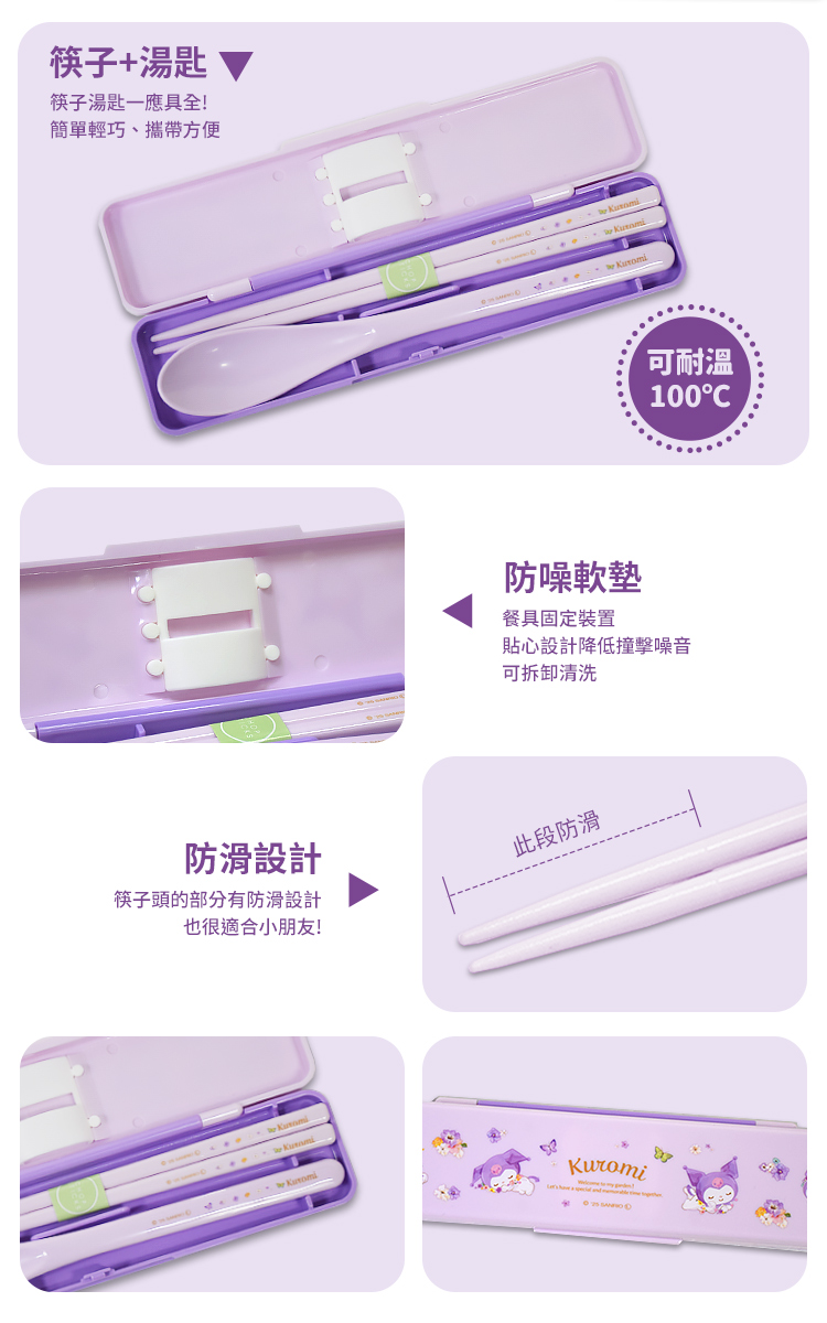 ●筷子湯匙一應具全●收納方便,簡約輕巧●貼心筷子靜音固定裝置,隨身攜帶也沒有噪音!●筷子頭的部分有防滑設計,方便夾取食物!