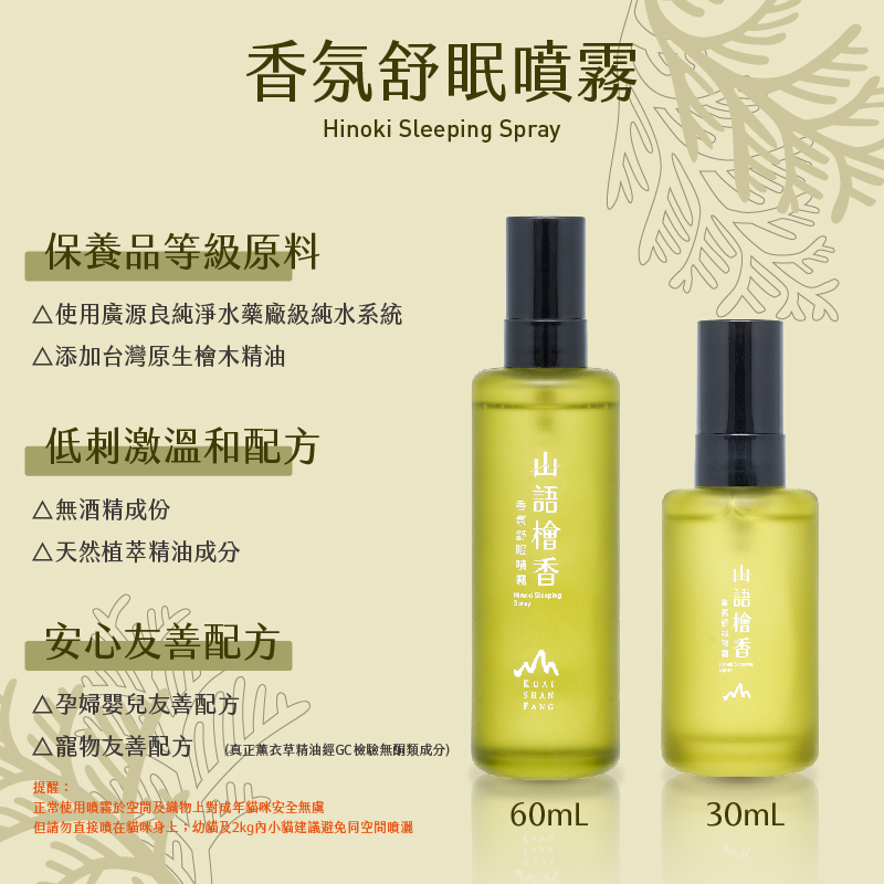 第二款:60ml舒眠噴霧+10ml檜木精油|精油營造森林感空間,搭配舒眠香氛一夜好眠