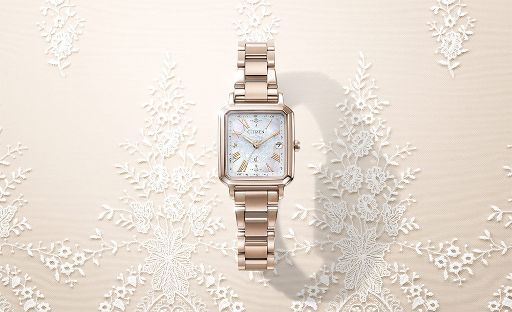輕巧方形錶殼採用超級鈦材質,搭配櫻花粉色表面處理,輕盈親膚且耐磨抗刮