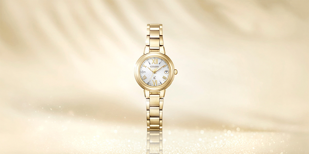 光澤細緻的白色錶盤上,點綴如雪花般細膩的閃耀質感