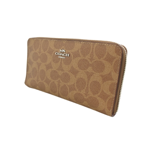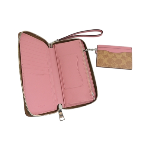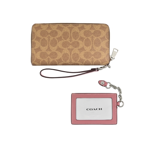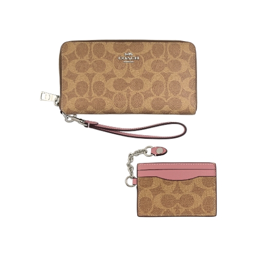 [平輸版] 【COACH】棕色C LOGO PVC附活動卡夾皮革手掛帶拉鍊長夾 真品平輸 | NearMe | 線上送禮平台『獨家支援 收禮者改選禮物』