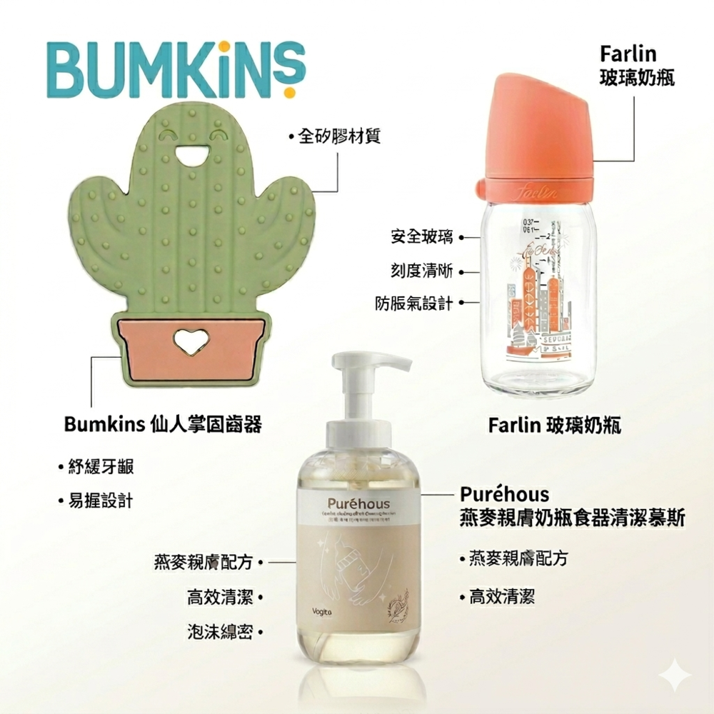 粉色禮盒組內容物如下:Puréhous燕麥親膚奶瓶食器清潔慕斯 500ml*1Farlin防脹氣玻璃奶瓶160ml(香港/日本 兩款隨機)*1Bumkins固齒器(恐龍/仙人掌/獨角獸 三款隨機)*1藍色禮盒組內容物如下:Puréhous燕麥親膚奶瓶食器清潔慕斯 500ml*1Farlin防脹氣玻璃奶瓶160ml(埃及/摩洛哥 兩款隨機)*1Bumkins固齒器(恐龍/仙人掌/獨角獸 三款隨機)*1