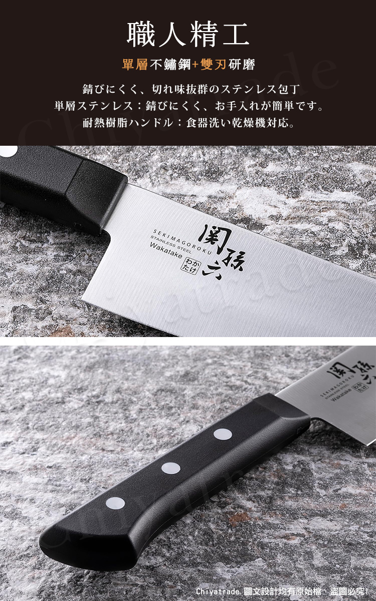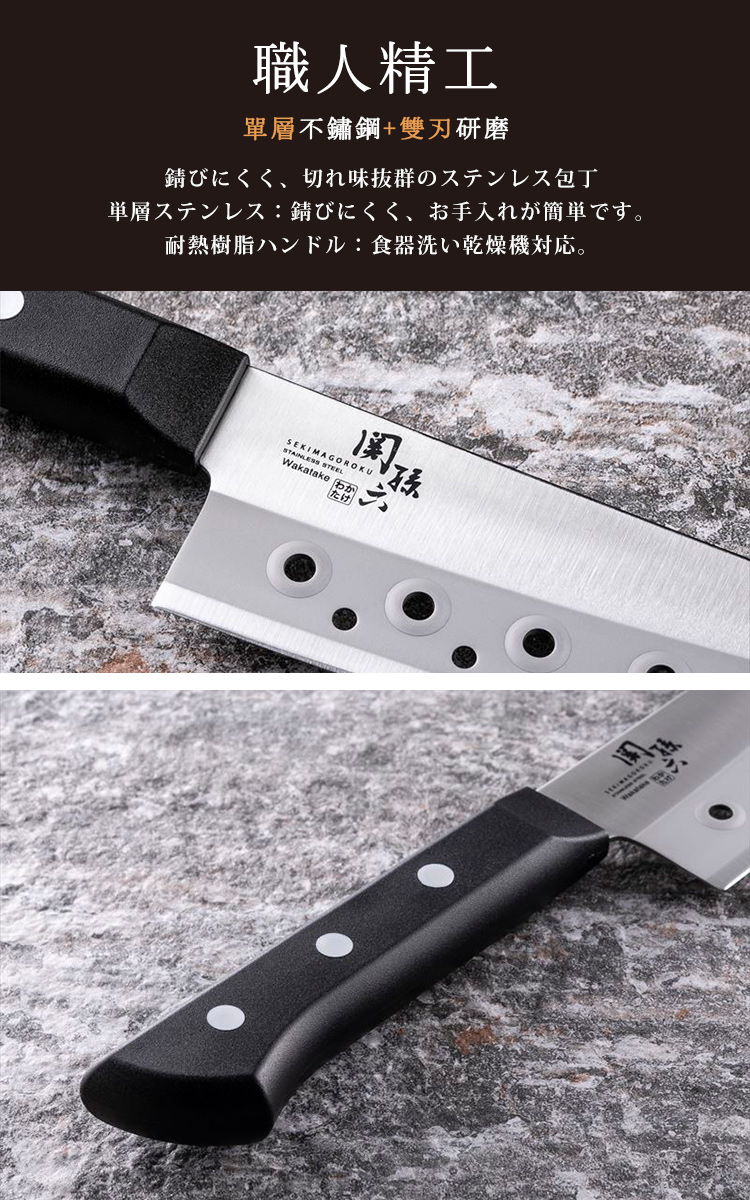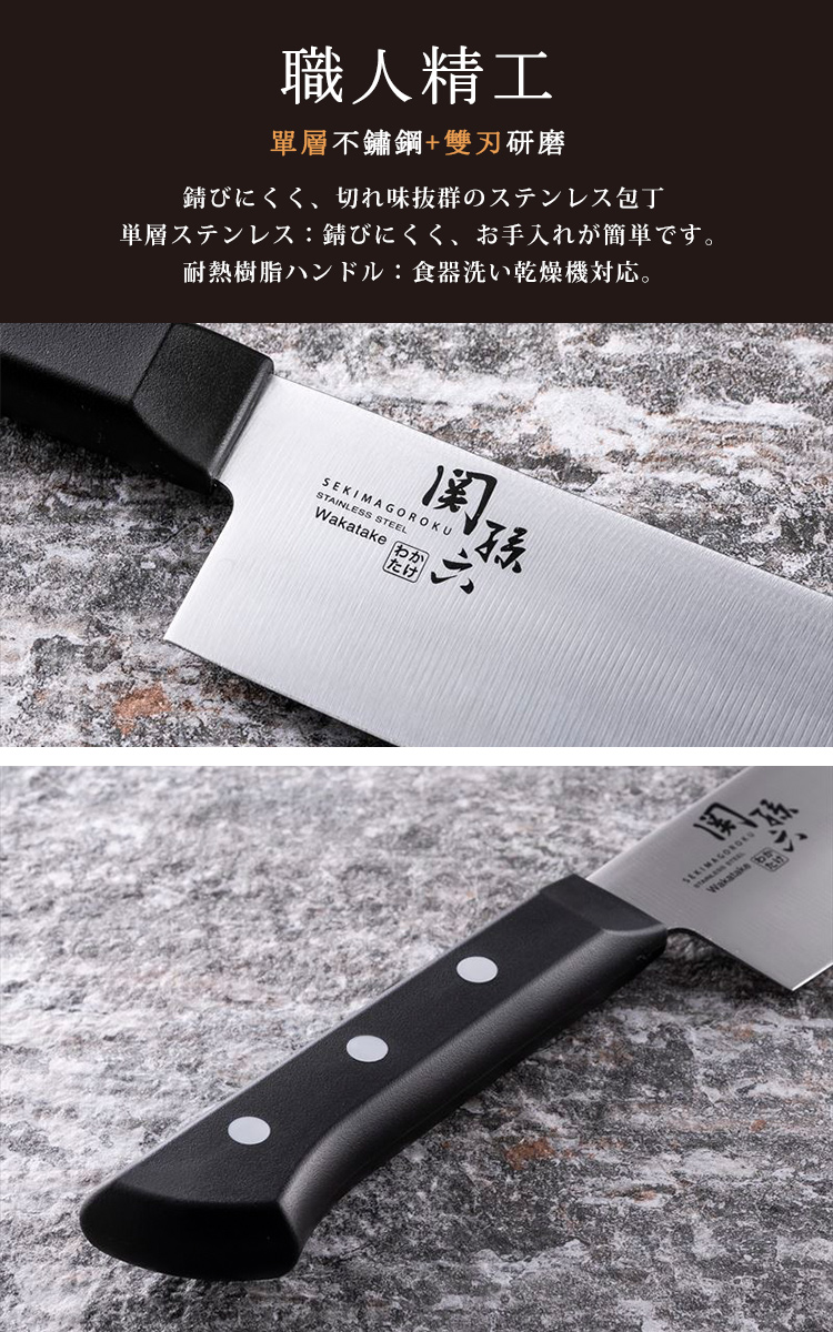 ●日本製 日本家庭用廚刀●職人匠造不鏽鋼製●單層不鏽鋼,防鏽且易於保養●刀柄與刀身比例均衡●符合人體工學、省力、手感舒適