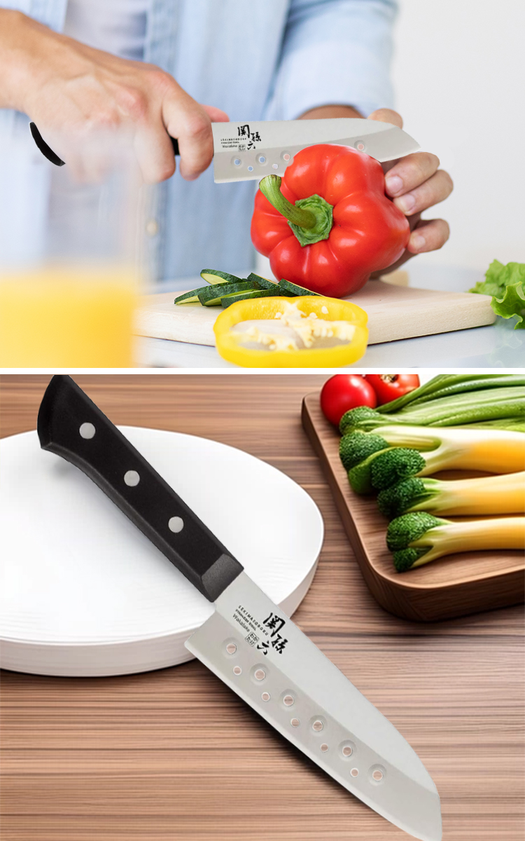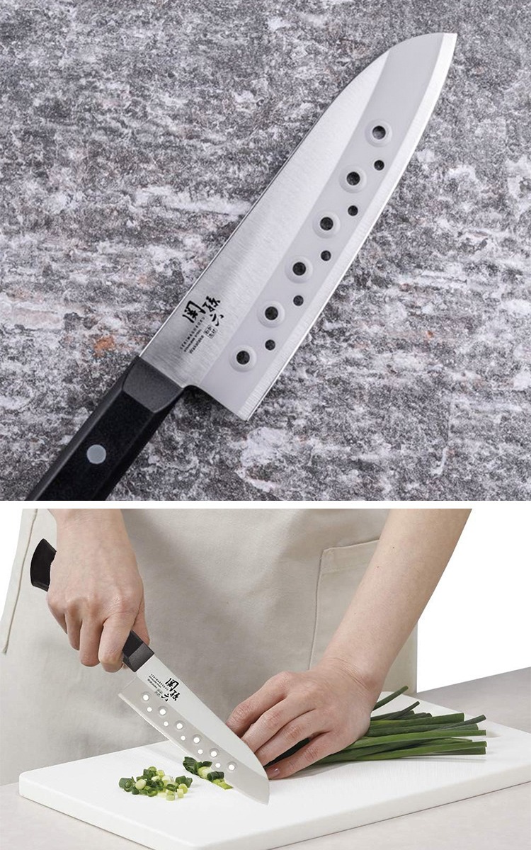 ●氣孔設計,當你切例如馬鈴薯片、黃瓜片、南瓜等水分較高或黏性食材時,食材更容易從刀刃剝離,而不會整片貼在刀上,可以防止食物粘連刀面,使切割更順暢,處理食材更省心。
