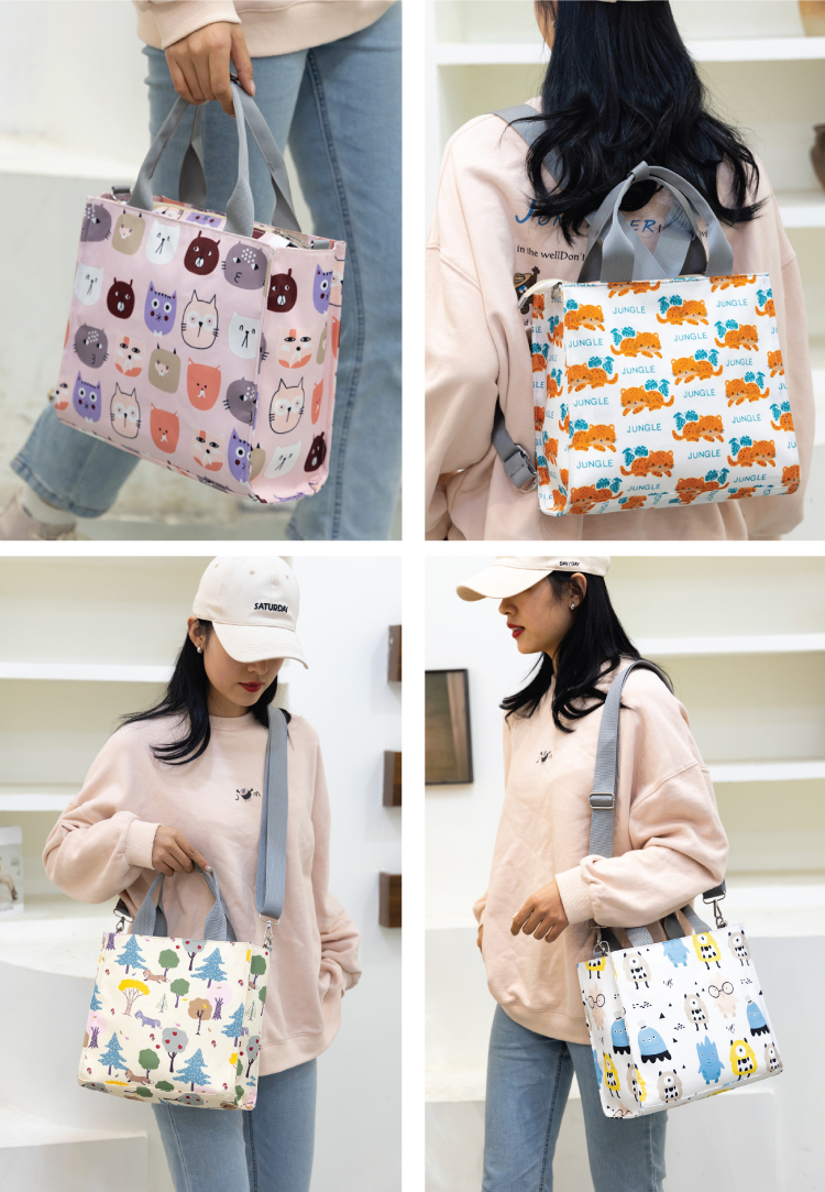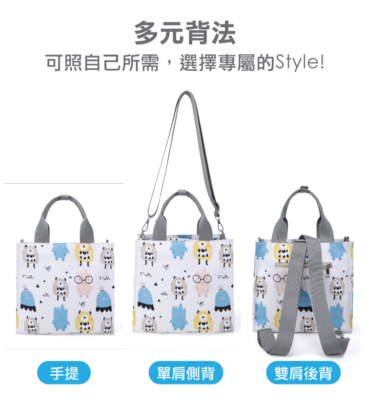 重量輕盈,輕鬆出行真美妙!● 大開口設計,迅速取物,合理擺放物品● 面料舒適柔軟,結實耐用,防潑水效果好● 不管肩背、手提、雙肩背,減齡魅力百搭