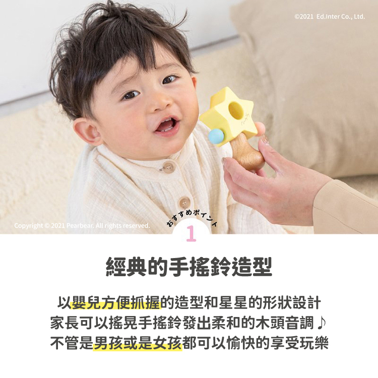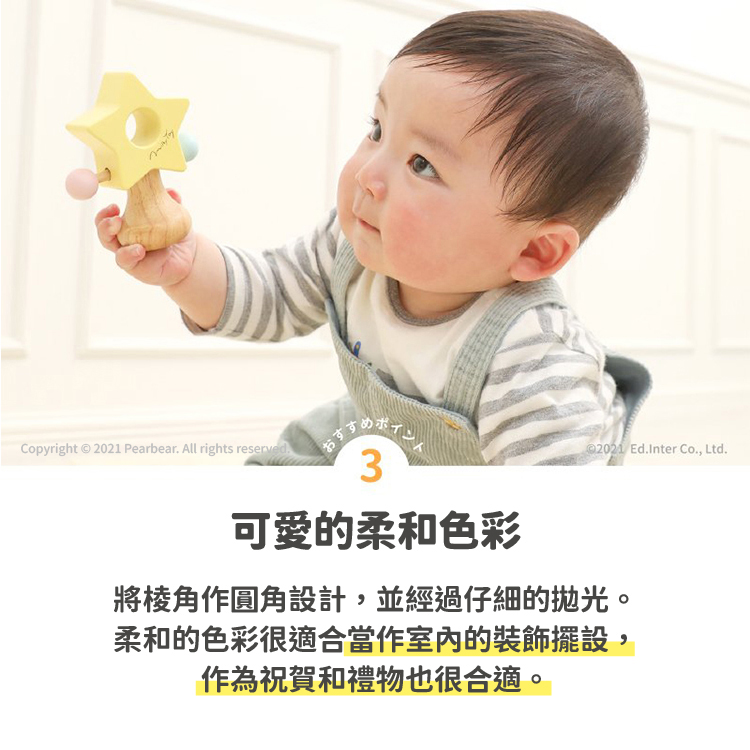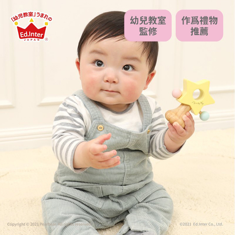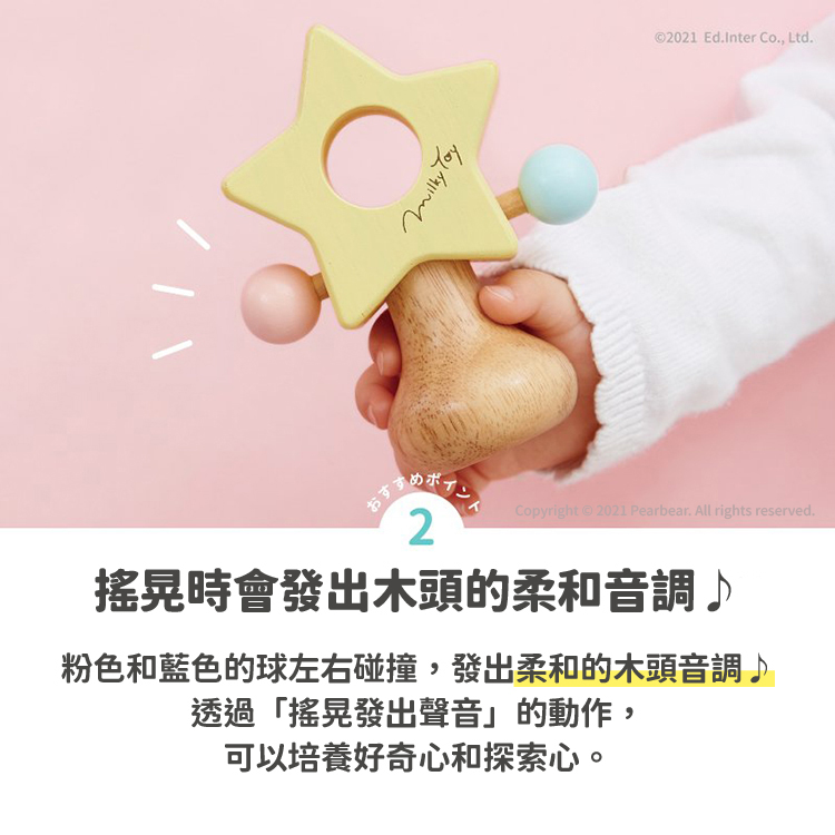 ED Inter Milky系列玩具 - 星星手搖鈴。星星形狀的撥浪鼓,柔和的木質色彩。 如果你搖動它,可以發出愉快的音調,這是一個專為嬰兒設計的可愛小物。