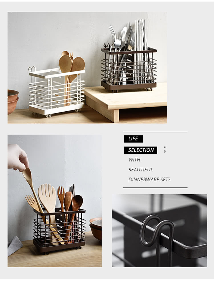 【Homely Zakka】日式簡約鐵藝可掛式筷子叉勺餐具分類瀝水籃/餐具收納架/置物架_2色一組(收納 瀝水 置物)