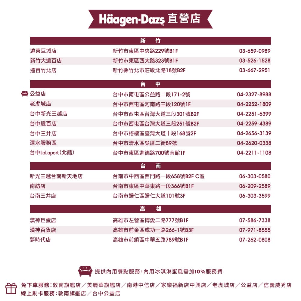 內容物:哈根達斯限量7吋外帶冰淇淋蛋糕提貨券(如欲兌換價格高於NT$2,380之蛋糕或因價格調漲,請依實際訂價補差