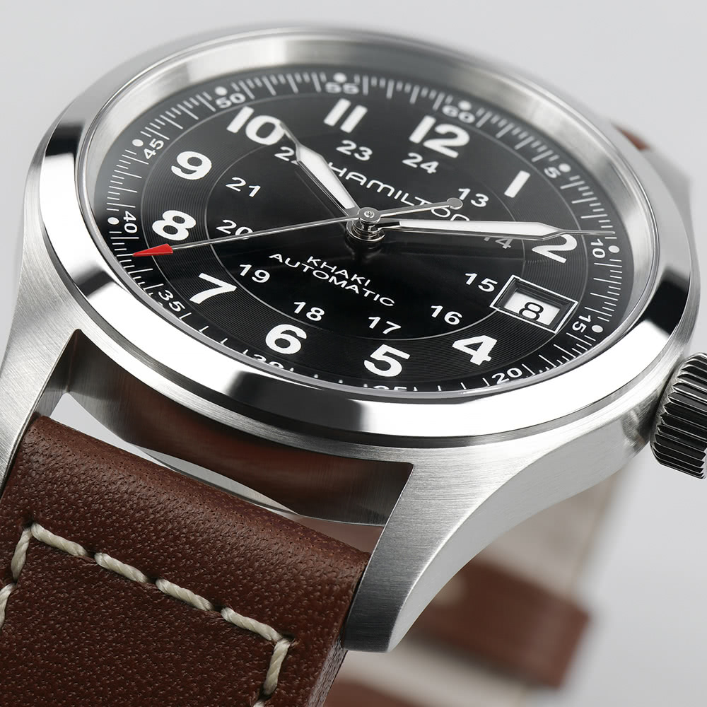 【HAMILTON 漢米爾頓旗艦館】卡其陸戰腕錶38mm(自動上鍊 中性 皮革錶帶 H70455533)