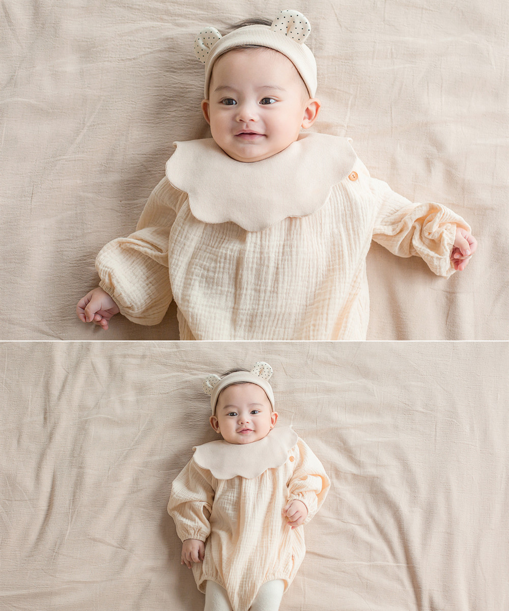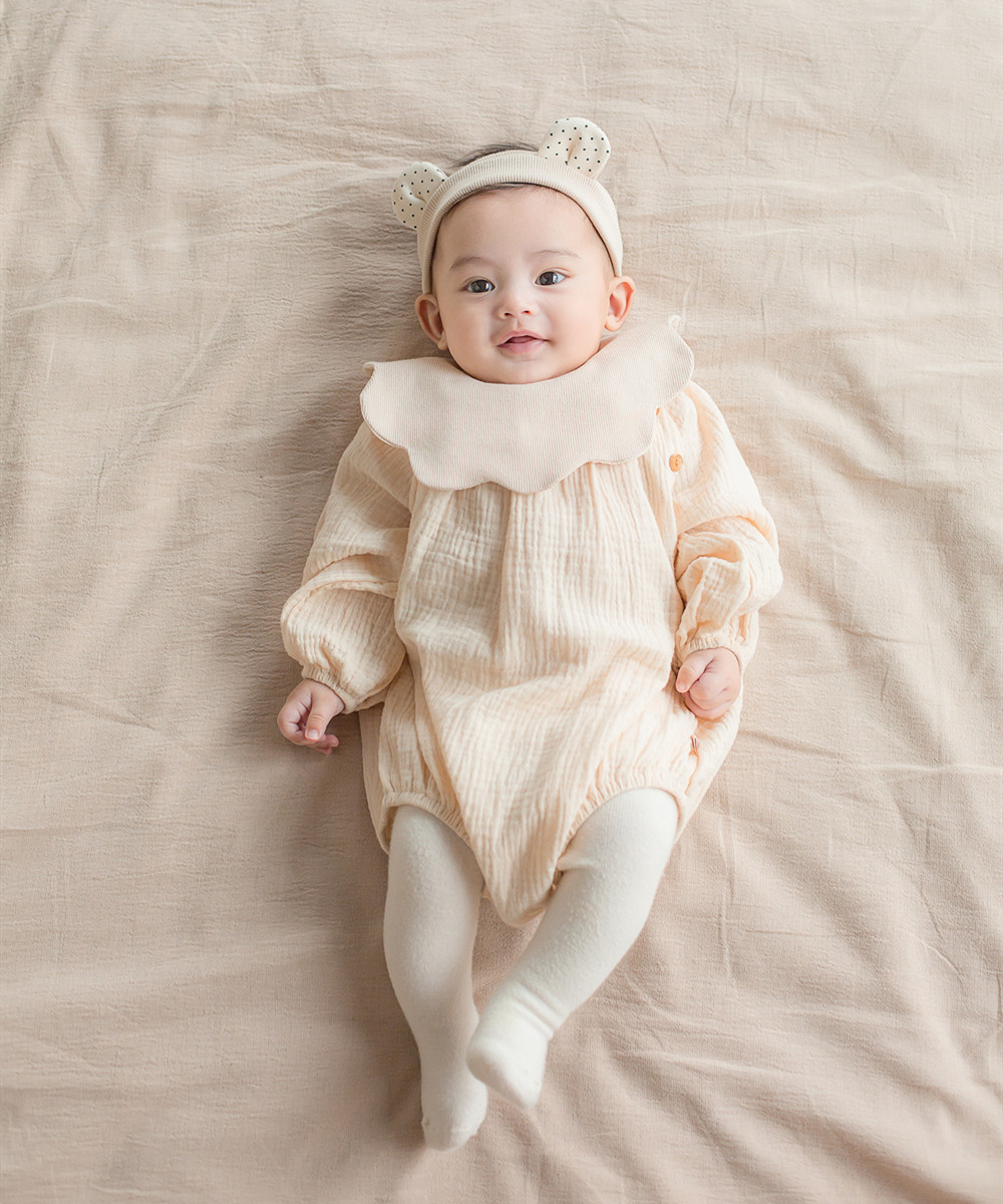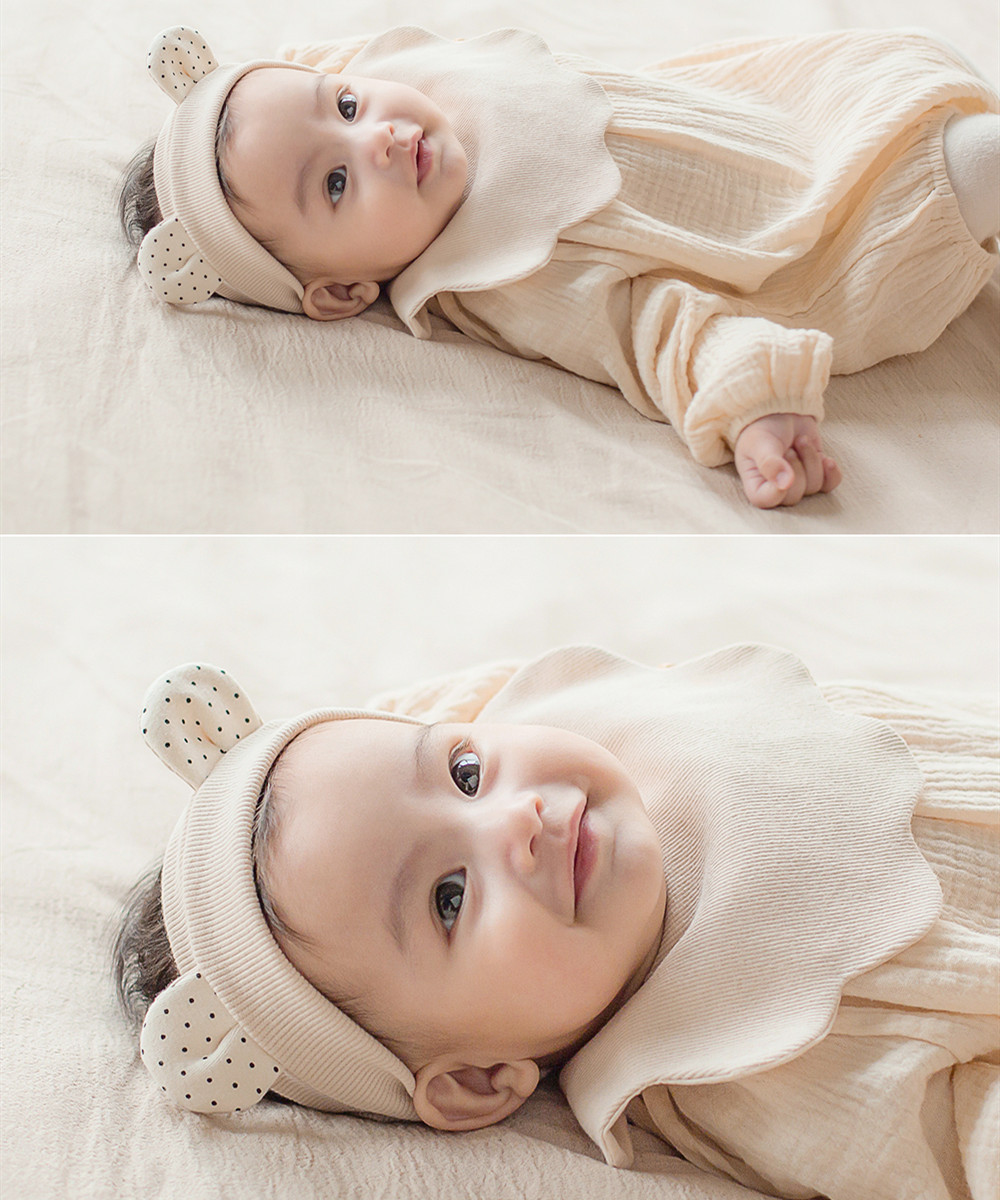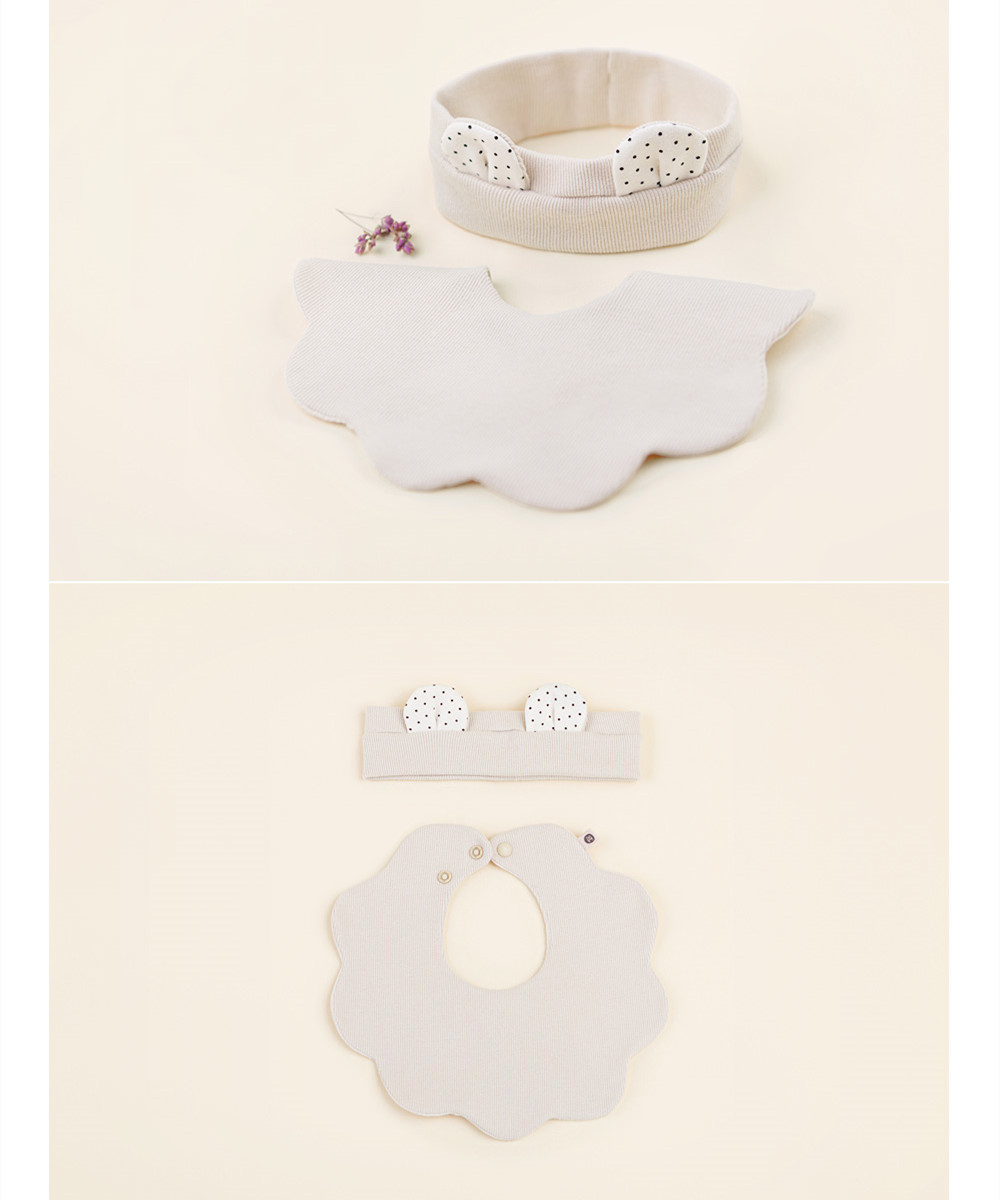 【Happy Prince】韓國製 Creamy熊熊嬰兒童髮飾+花瓣圍兜2件組(女童頭花口水巾)