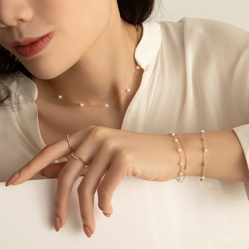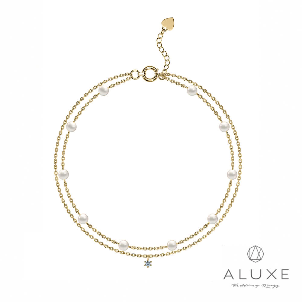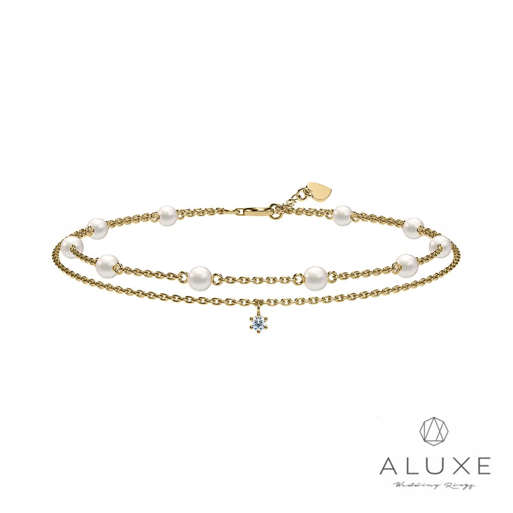 【ALUXE 亞立詩】10K金 天然淡水珍珠 鑽石手鍊 單鑽雙鍊 珍愛系列 Be Loved BR0215(珍愛系列 Be Loved)