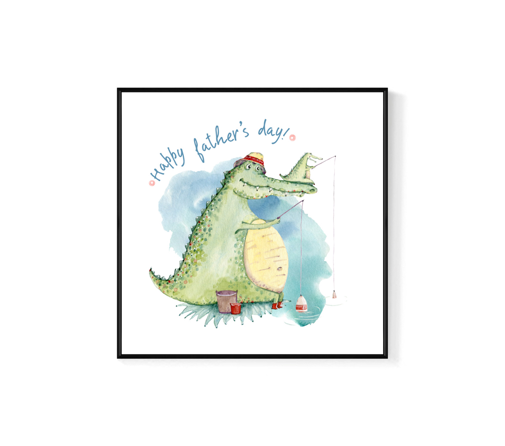 【菠蘿選畫所】與爸爸的時刻-40x40cm(恐龍掛畫/兒童房裝飾/親子禮物/父親節禮物)