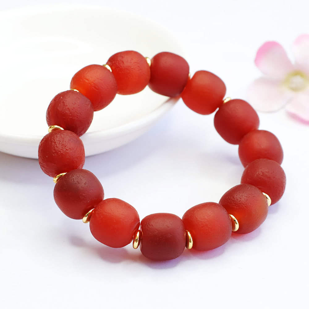 品名: 老料紅瑪瑙手串原皮玉髓手鍊