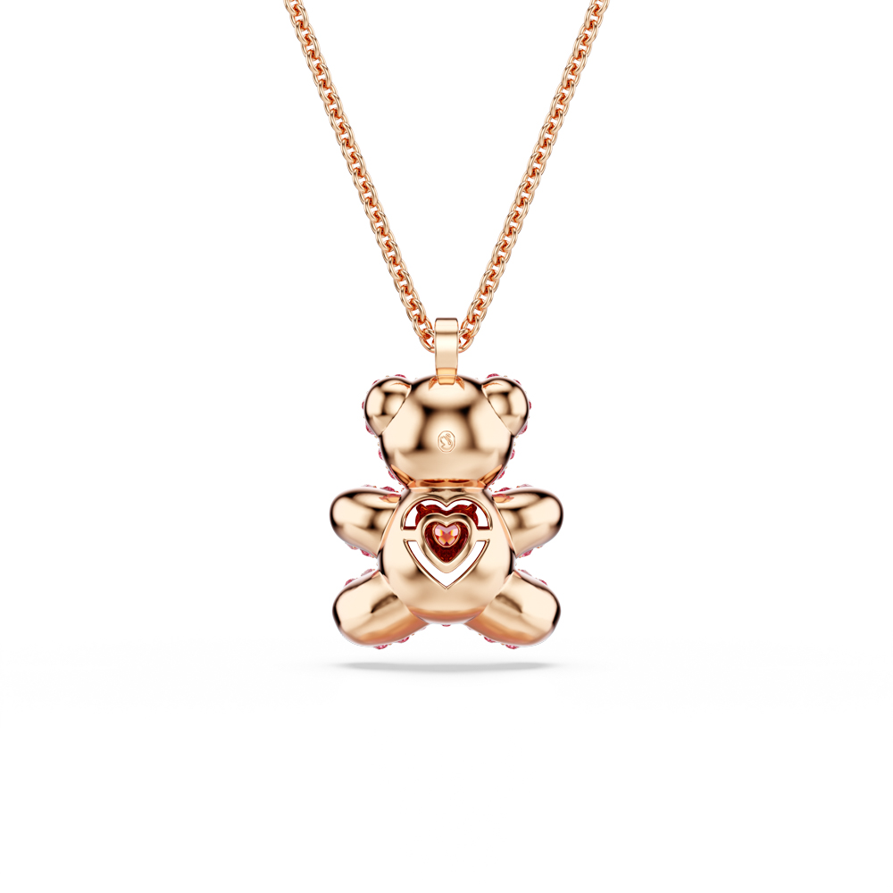 【SWAROVSKI 施華洛世奇】Teddy 鏈墜 泰迪熊 粉紅色 鍍玫瑰金色(情人節禮物)