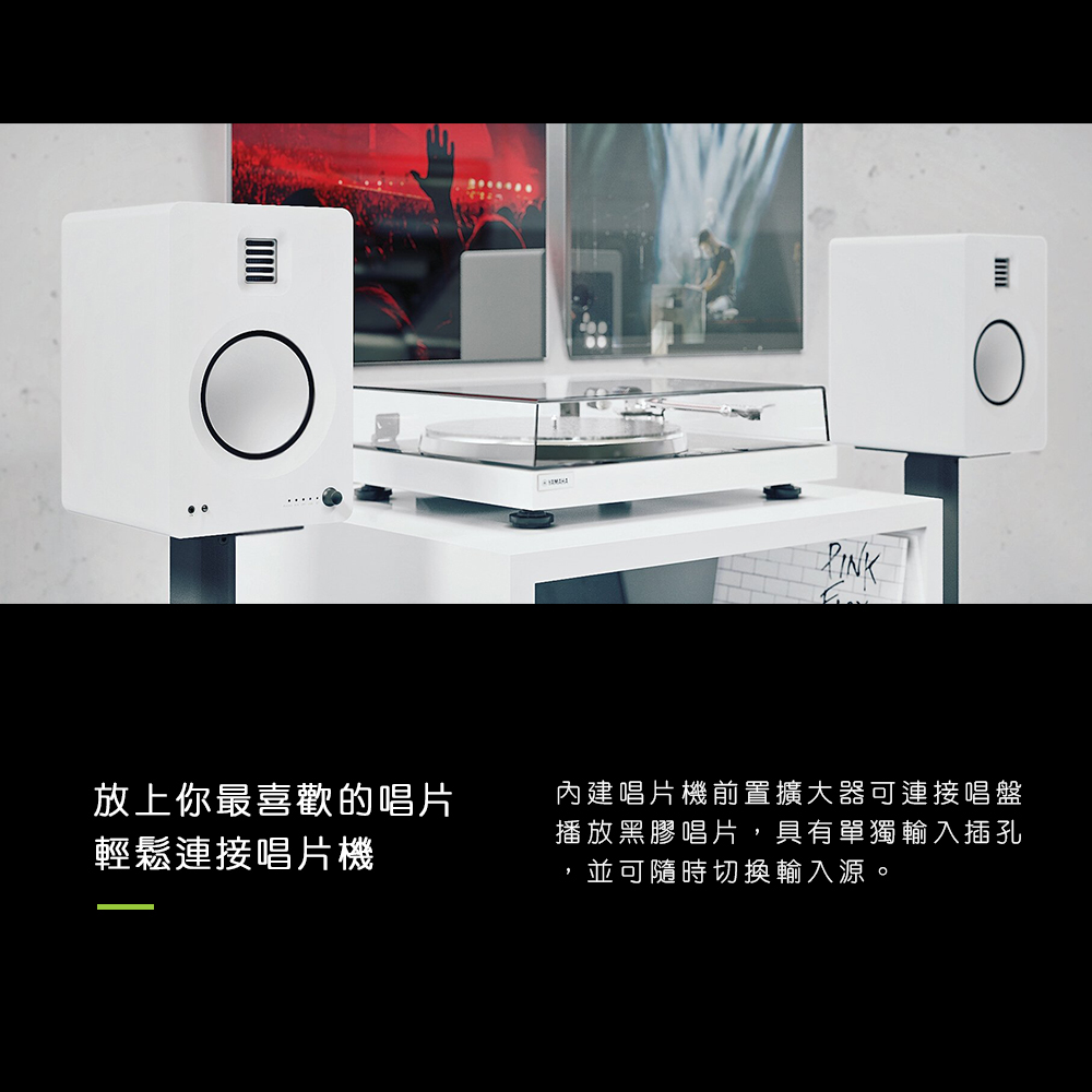 內建唱片機前置擴大器可連接唱盤播放黑膠唱片,