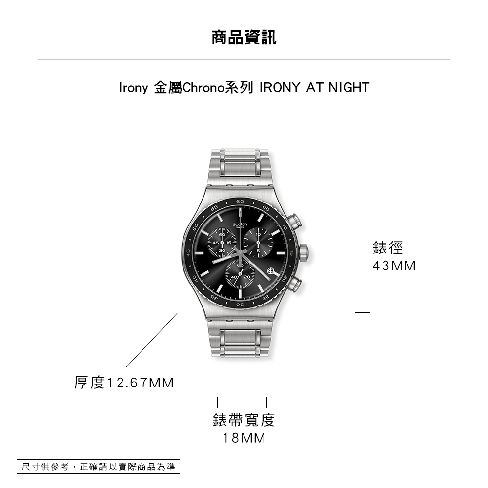 Swatch IRONY AT NIGHT 金屬運動錶/男錶/女錶/瑞士製造 YVS495G (43mm)