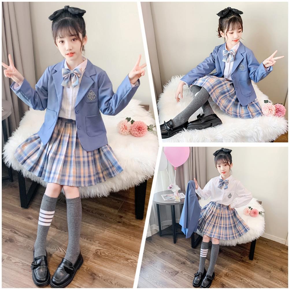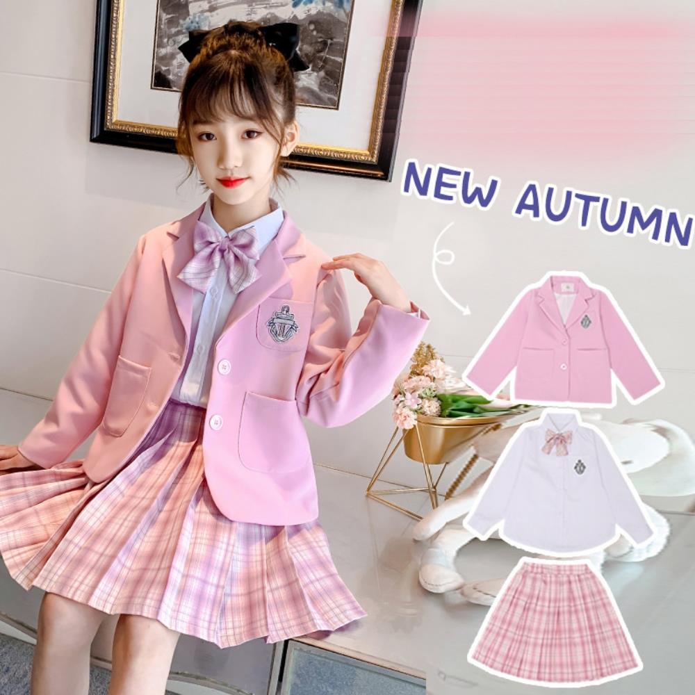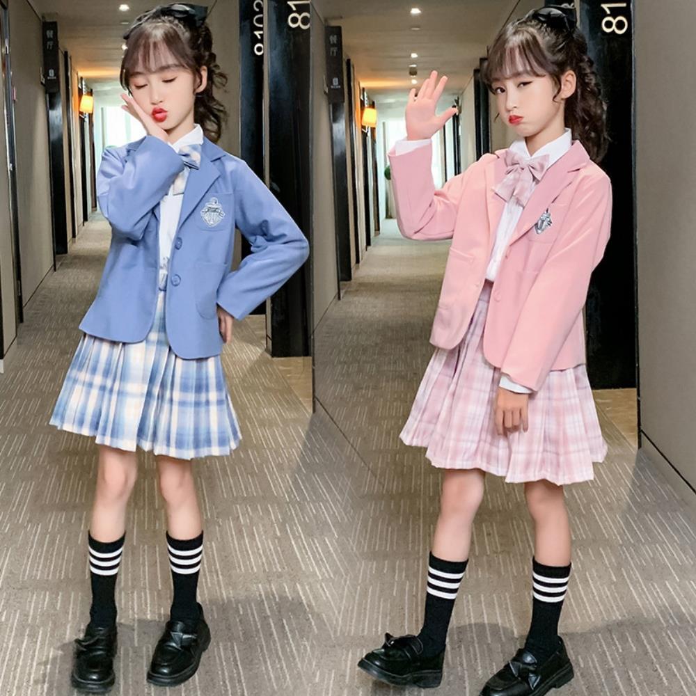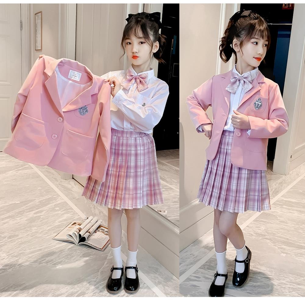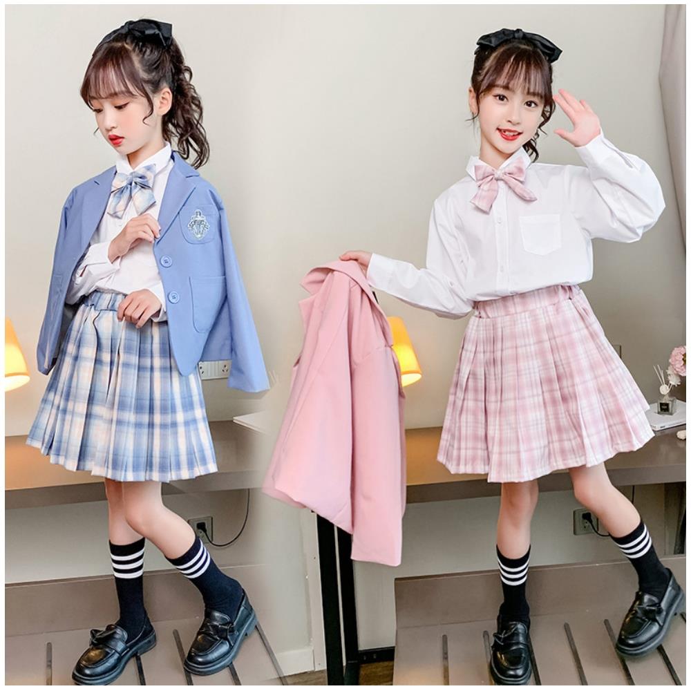 【小衣衫童裝】女童三件套偶像學院風秋款格子裙套裝(1110912)