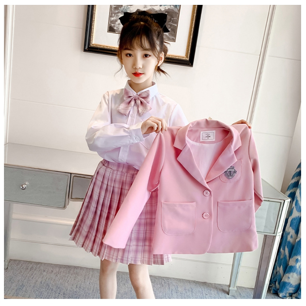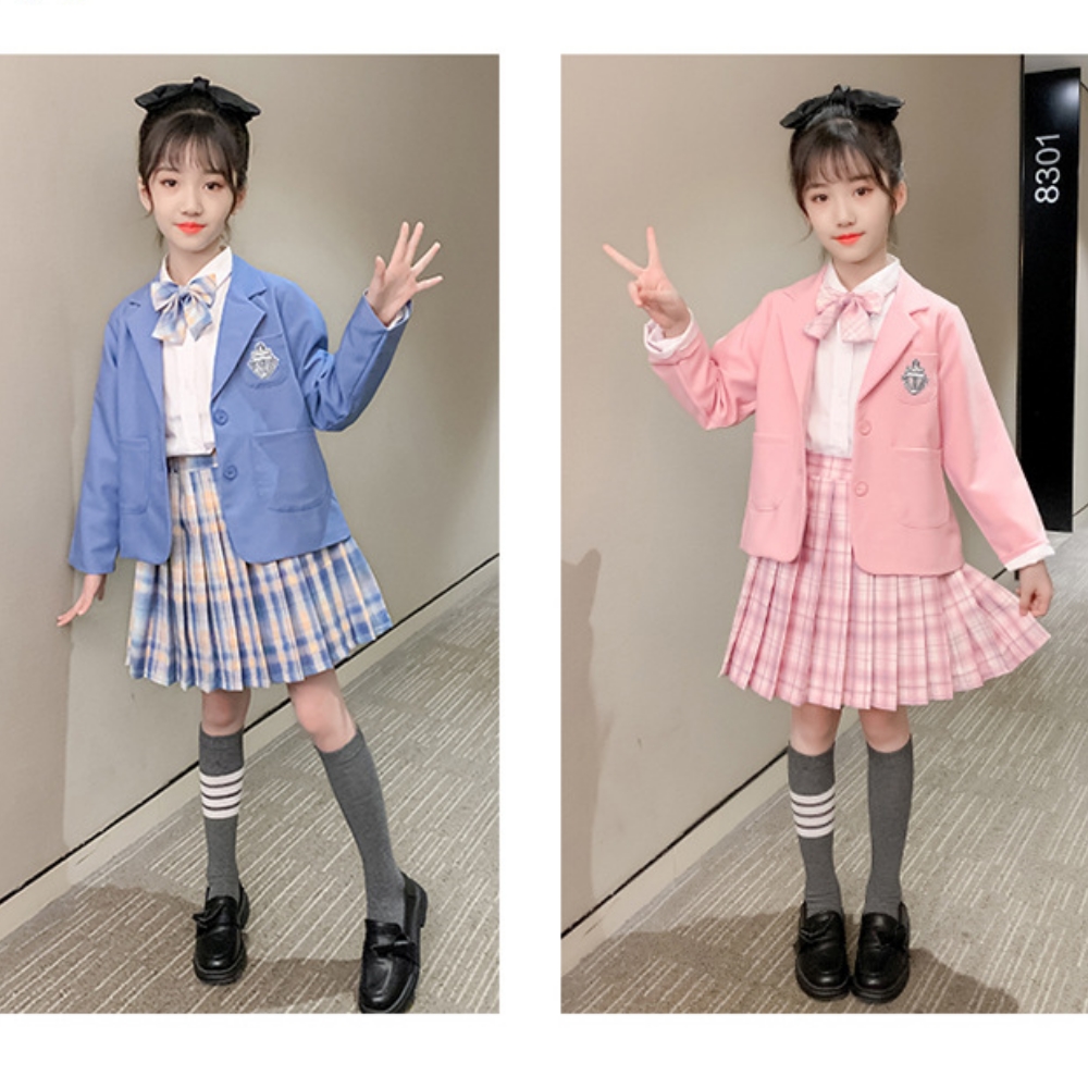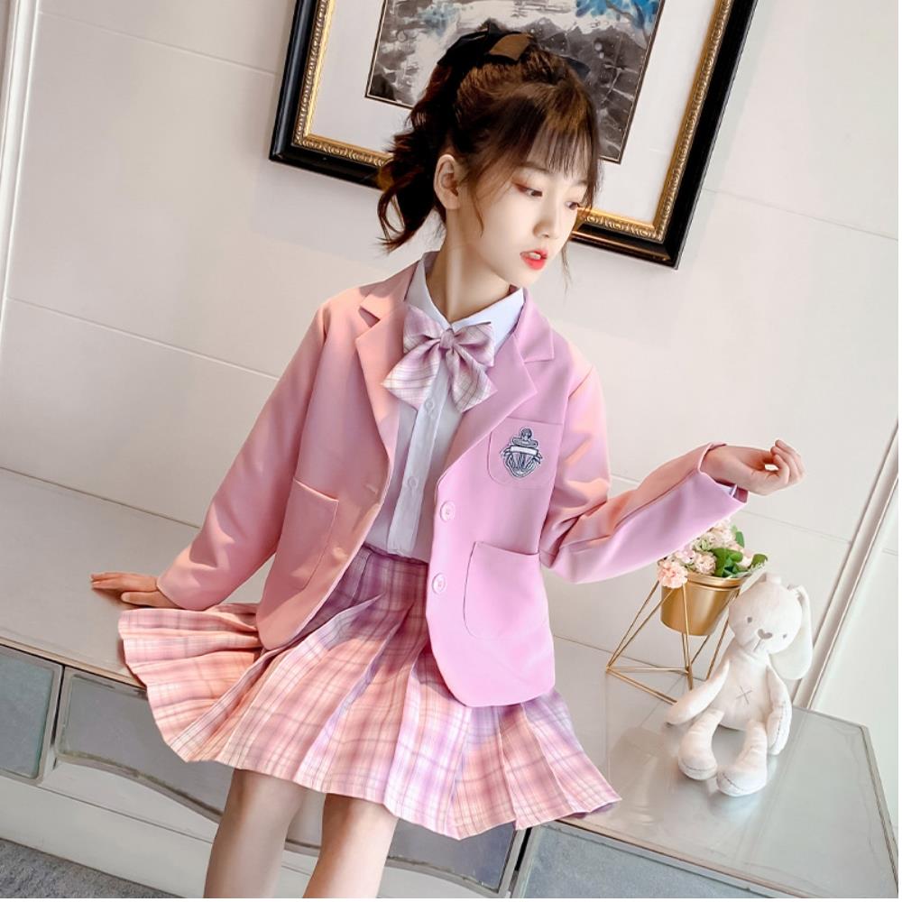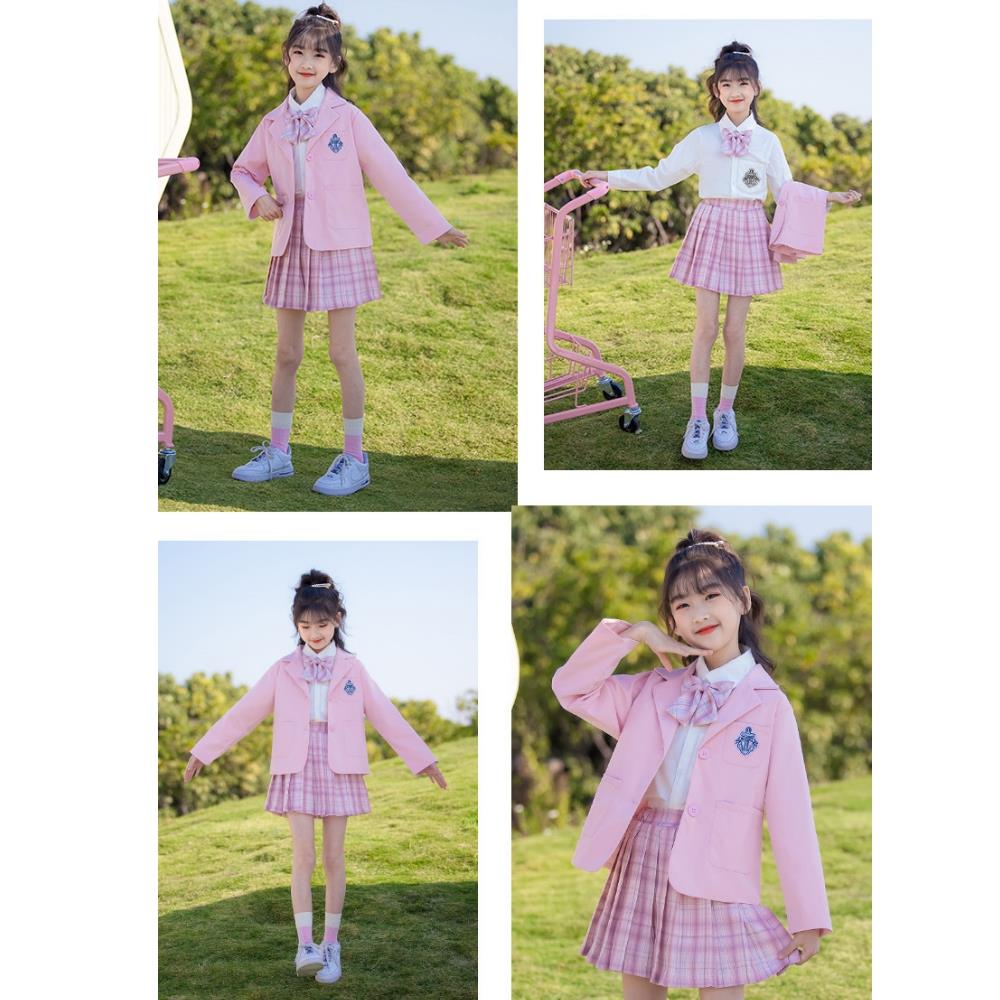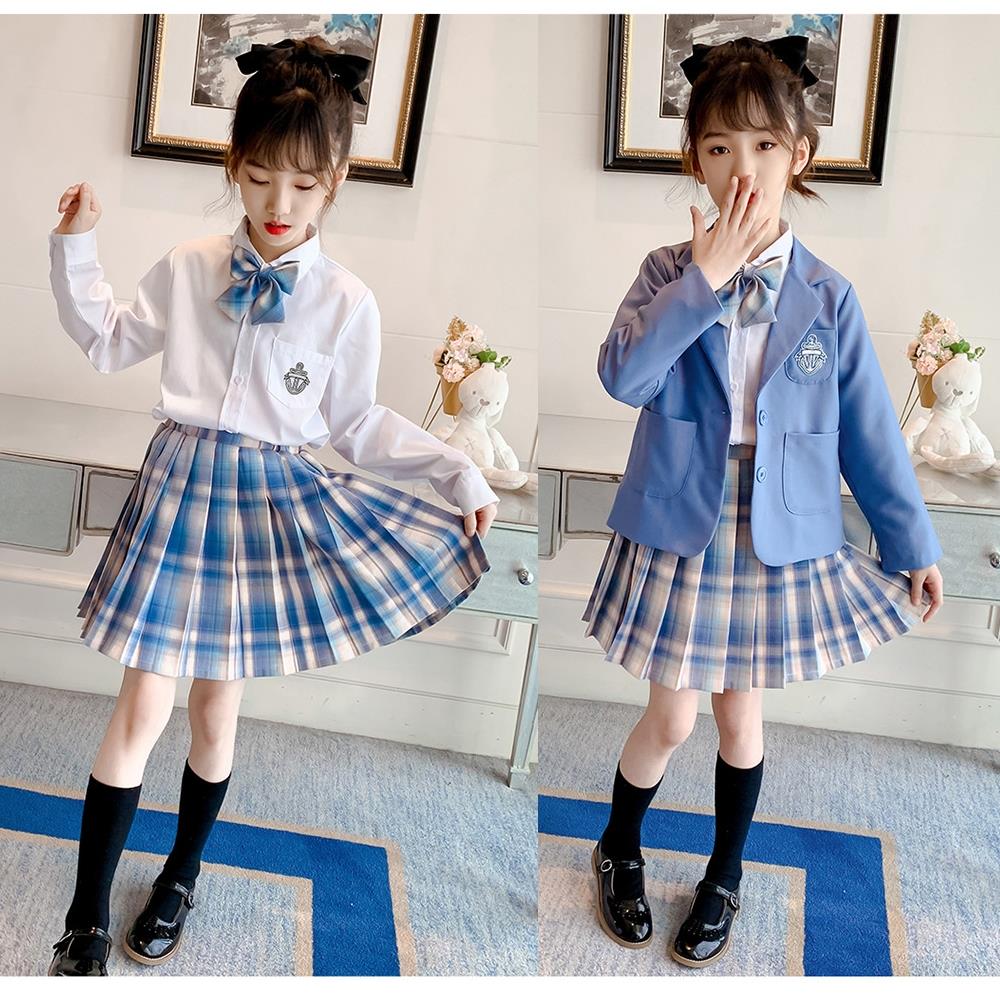 【小衣衫童裝】女童三件套偶像學院風秋款格子裙套裝(1110912)