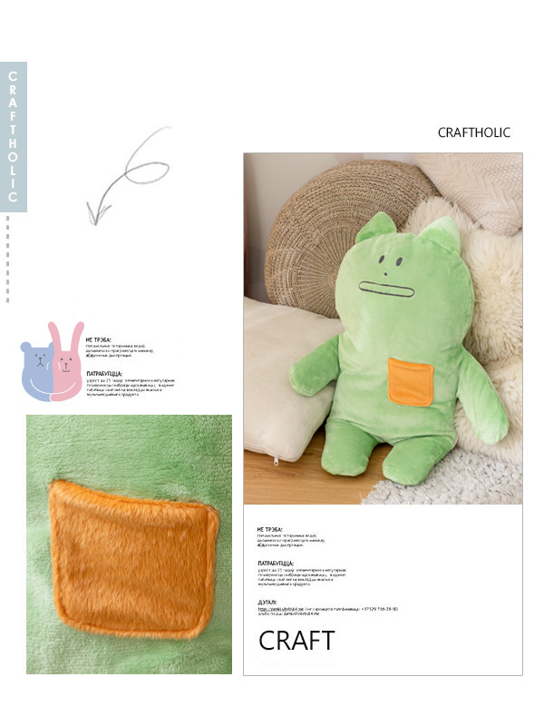 抱枕身體背面有拉鍊。內層表布有Washable CRAFT的原創印花
