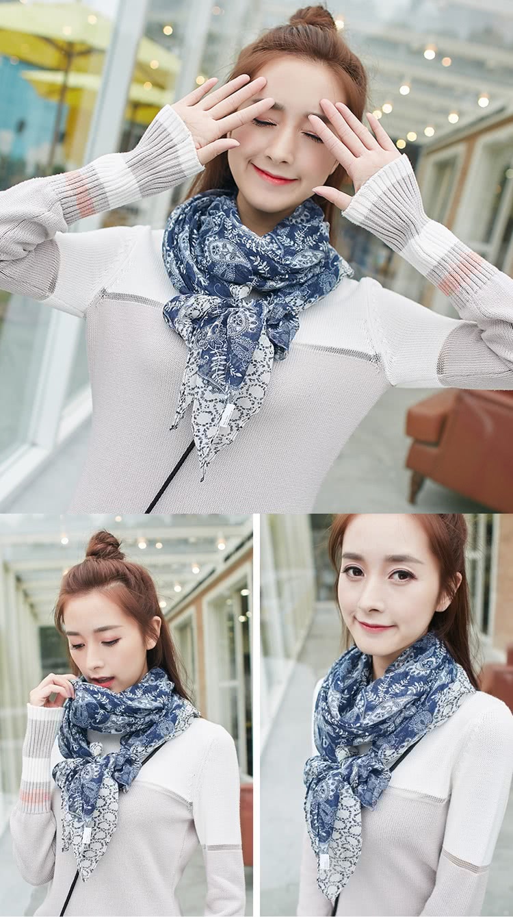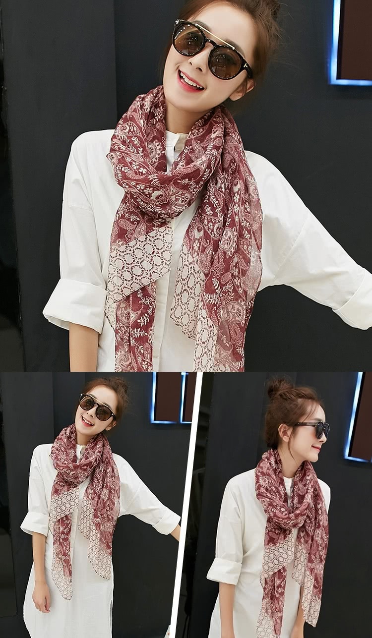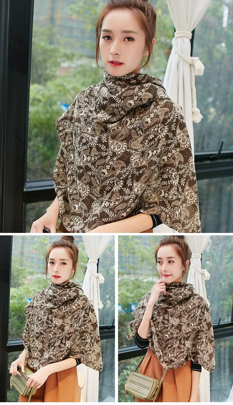 【Emi 艾迷】優雅秋葉柔軟親膚棉麻圍巾