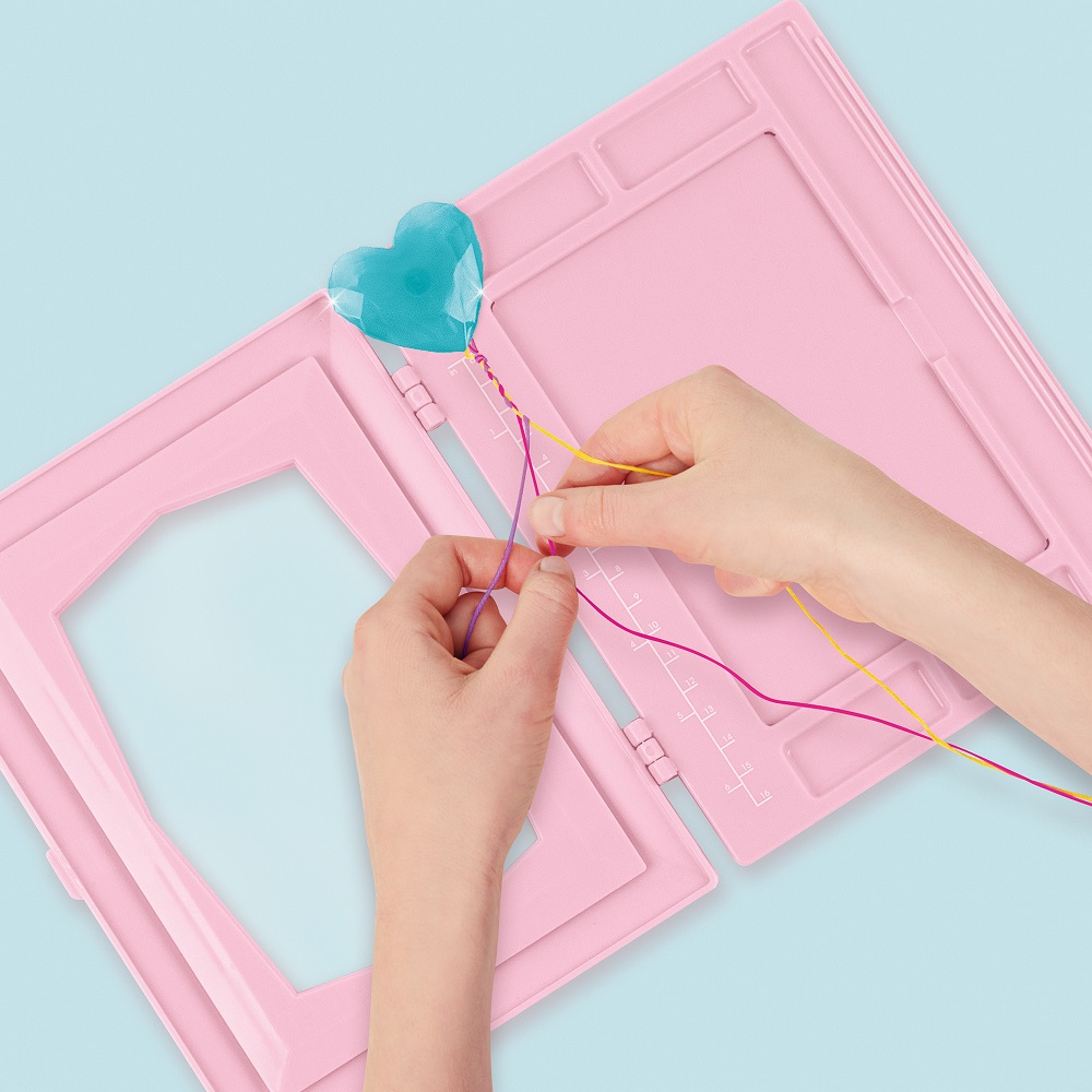愛心書夾可夾住編繩,方便創作親手編製的手鍊,