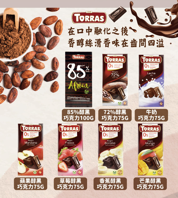即期品【TORRAS 多樂】牛奶巧克力(75G 無加糖/麥芽糖醇巧克力)