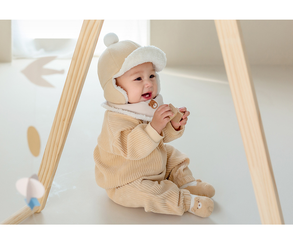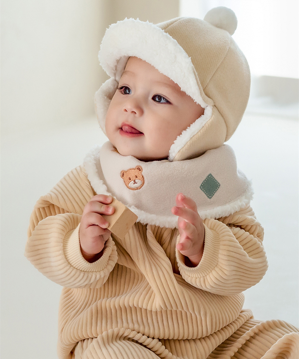 【Happy Prince】韓國製 Dearbi奶白雪絨內裡嬰兒童圍兜(保暖寶寶圍巾圍兜口水巾)