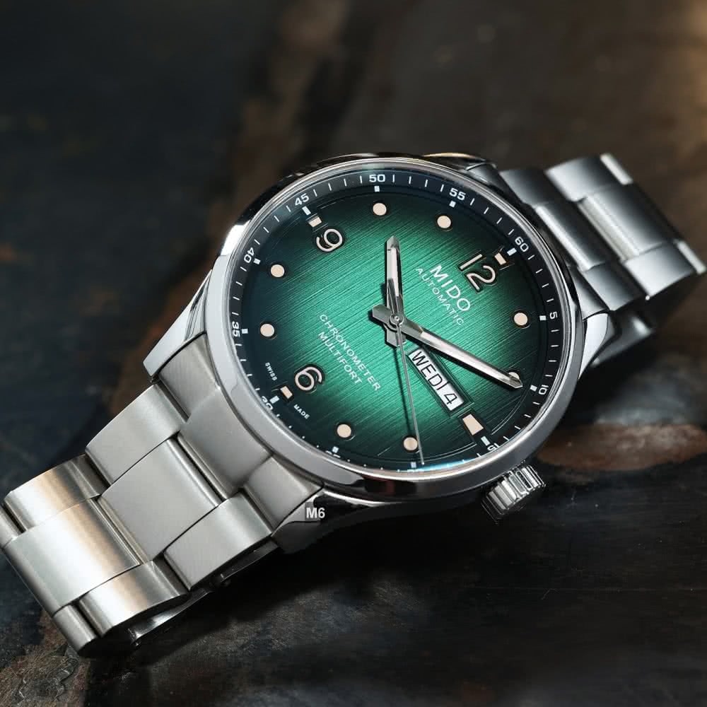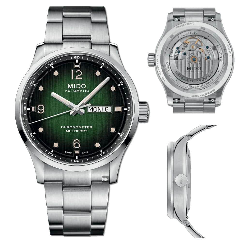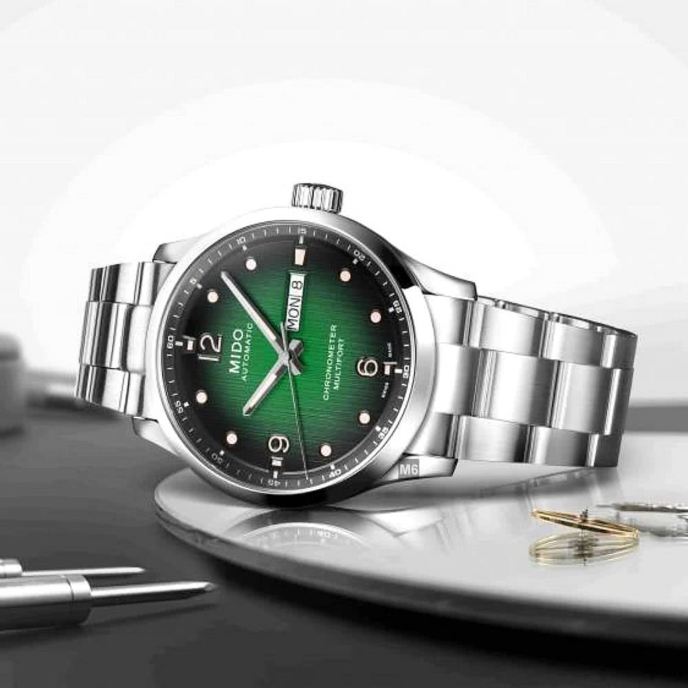 【MIDO 美度】廣告熱賣款 Multifort先鋒M天文台認證腕錶 黑綠漸變面42㎜ M6(M038.431.11.097.00)
