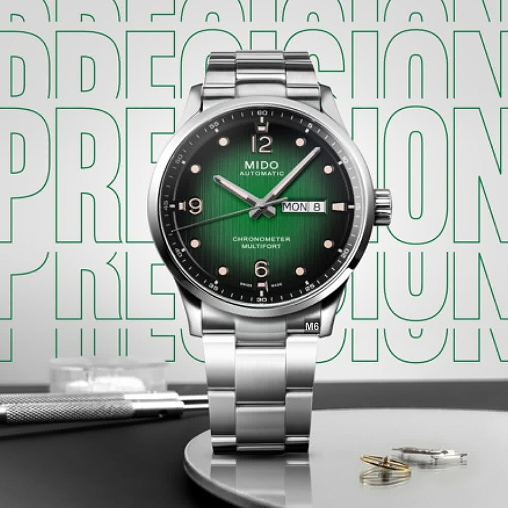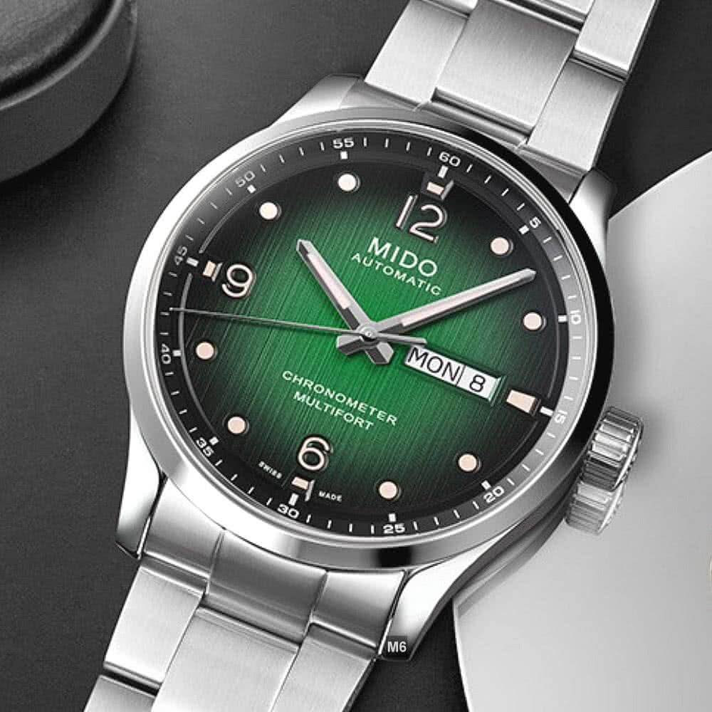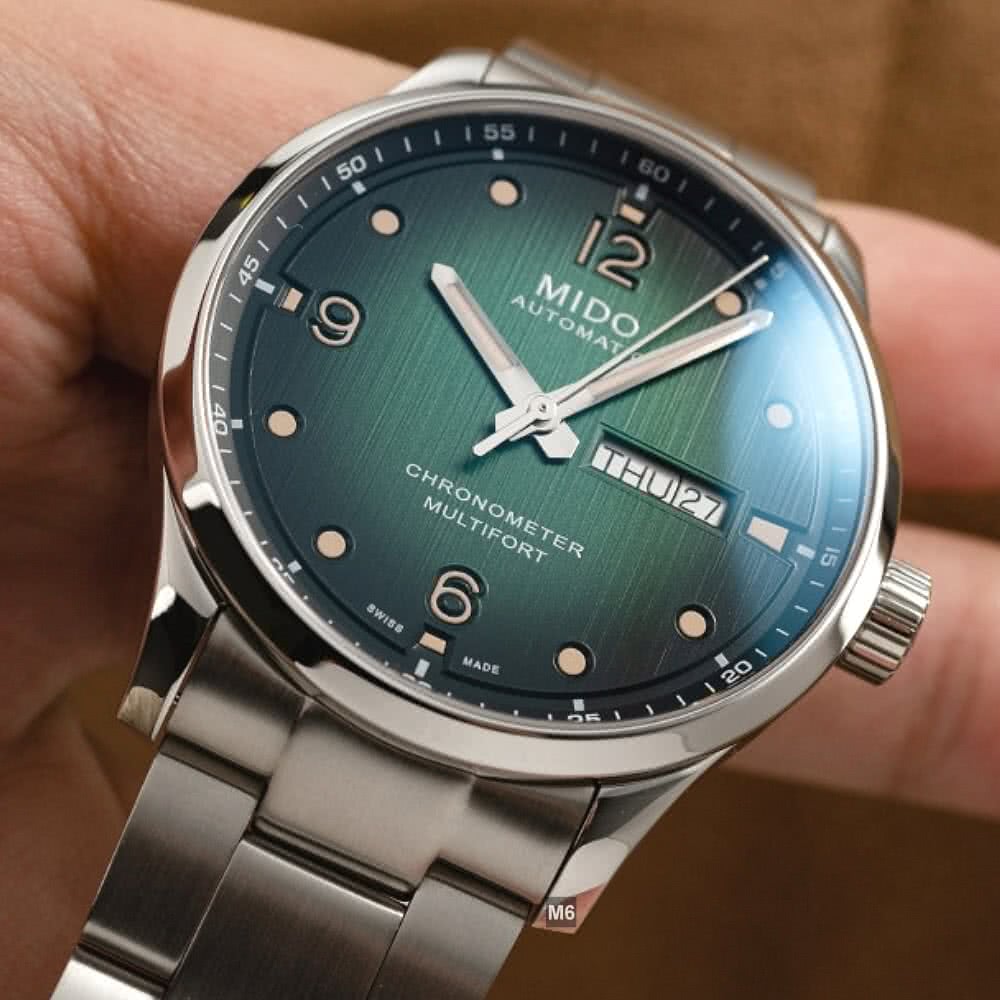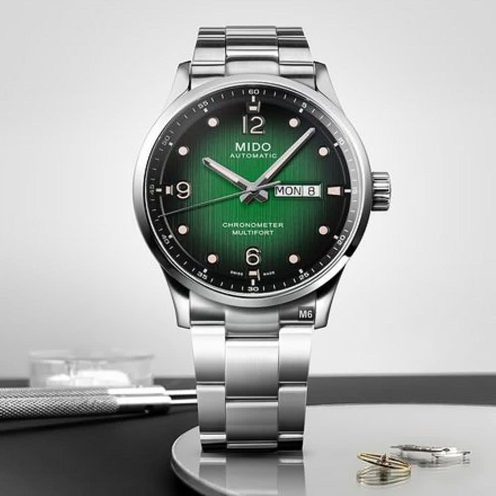 【MIDO 美度】廣告熱賣款 Multifort先鋒M天文台認證腕錶 黑綠漸變面42㎜ M6(M038.431.11.097.00)