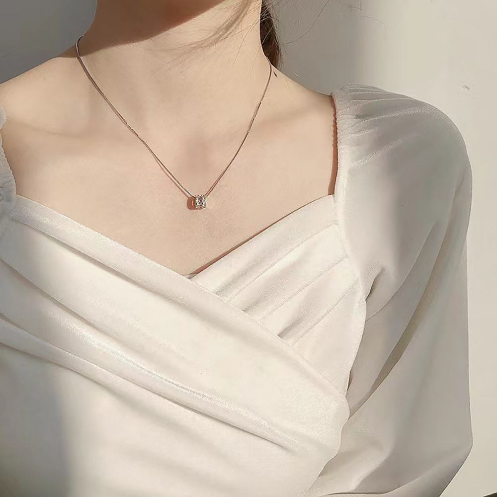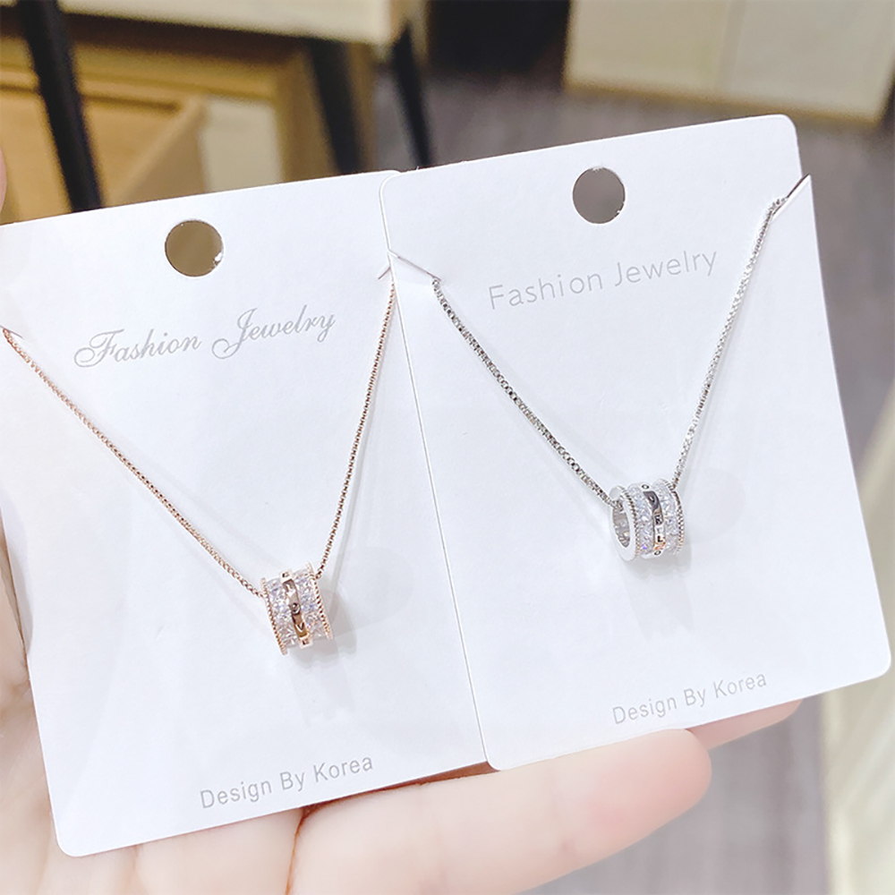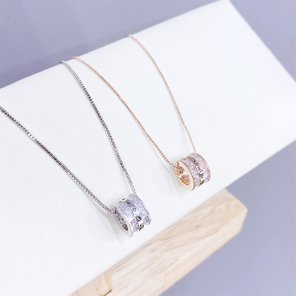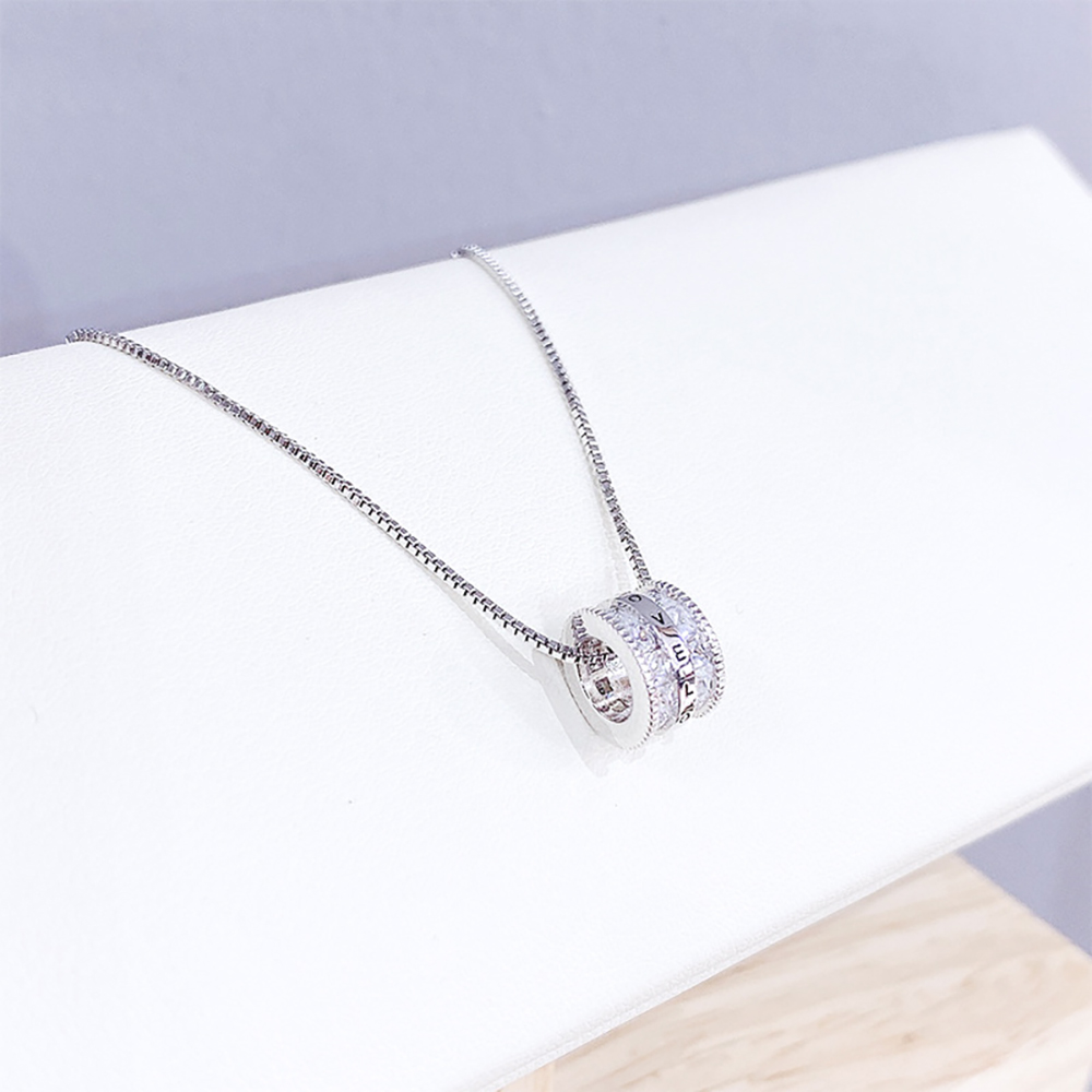 【Umi】韓式東大門簡約奢華時尚優雅百搭銀項鍊511(鑲鑽滾輪 LOVE 韓劇 精緻情人節禮物)