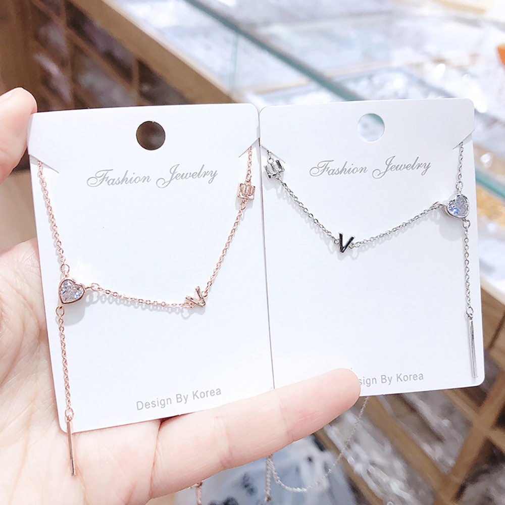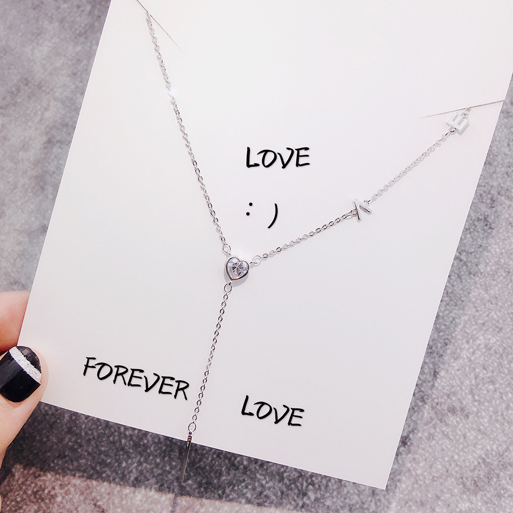 【Umi】韓式東大門簡約奢華時尚優雅百搭銀項鍊(LOVE字母單鑽浪漫愛心Y字鏈 韓劇 精緻情人節禮物)