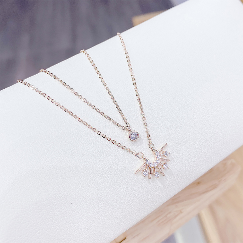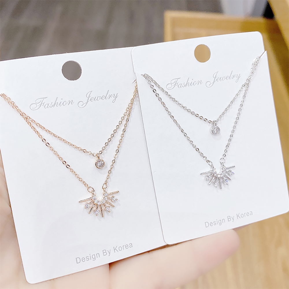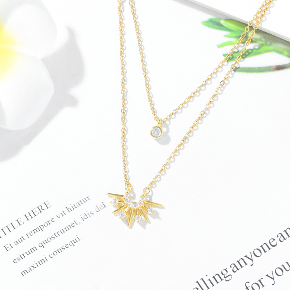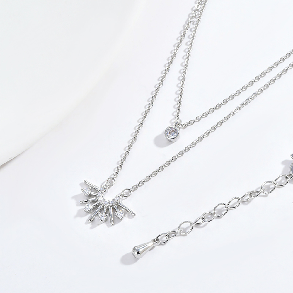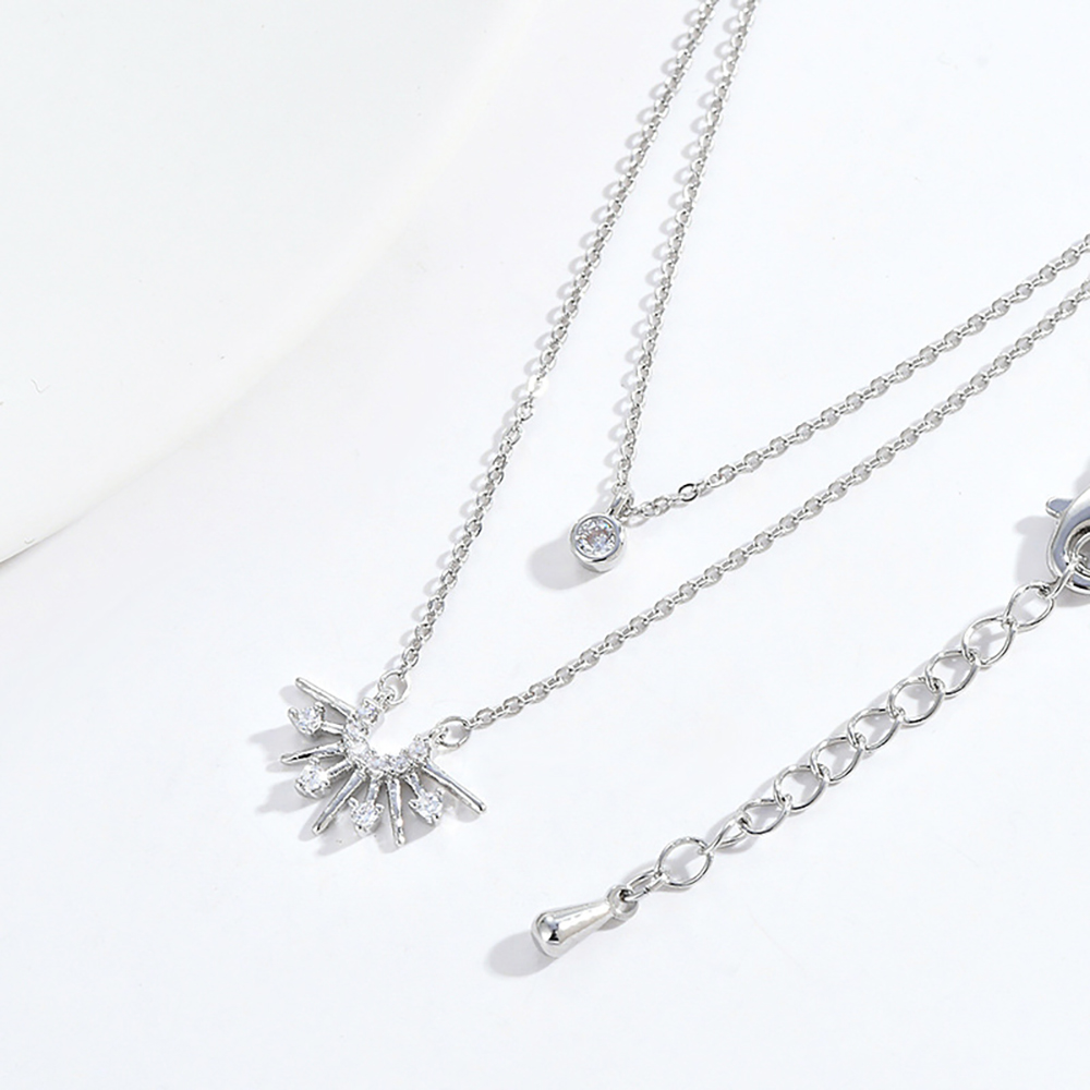 【Umi】韓式東大門簡約奢華時尚優雅百搭銀項鍊300(日出日落雙層微鑲鑽幸運單鑽 韓劇 精緻情人節禮物)