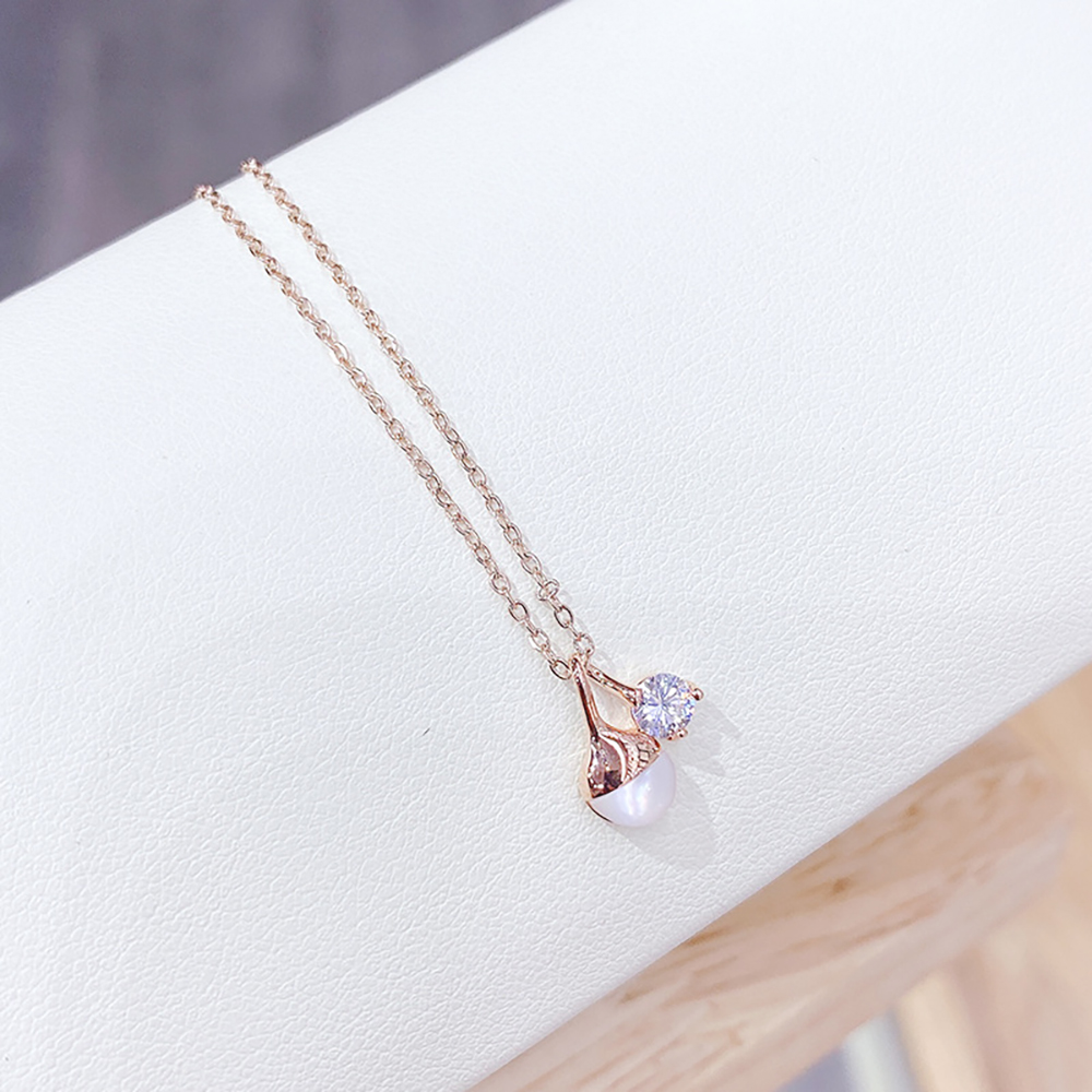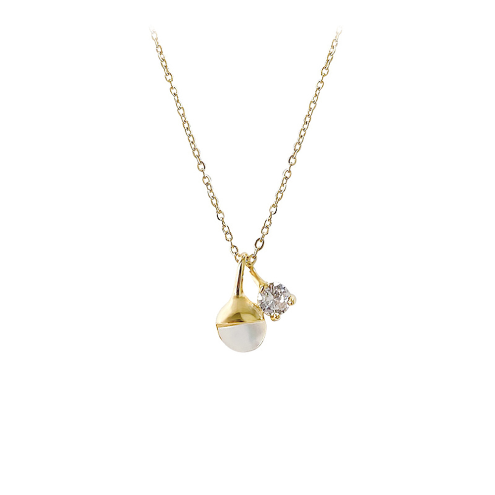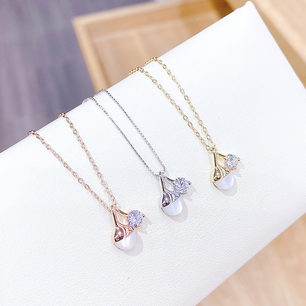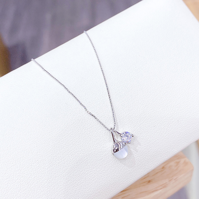 【Umi】韓式東大門簡約奢華時尚優雅百搭銀項鍊(閃耀貓眼石櫻桃造型單鑽 韓劇 精緻情人節禮物)