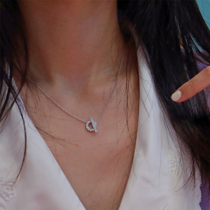 【Umi】韓式東大門圓圈一字扣微鑲鑽簡約奢華時尚優雅百搭銀項鍊(韓劇精緻情人節禮物)