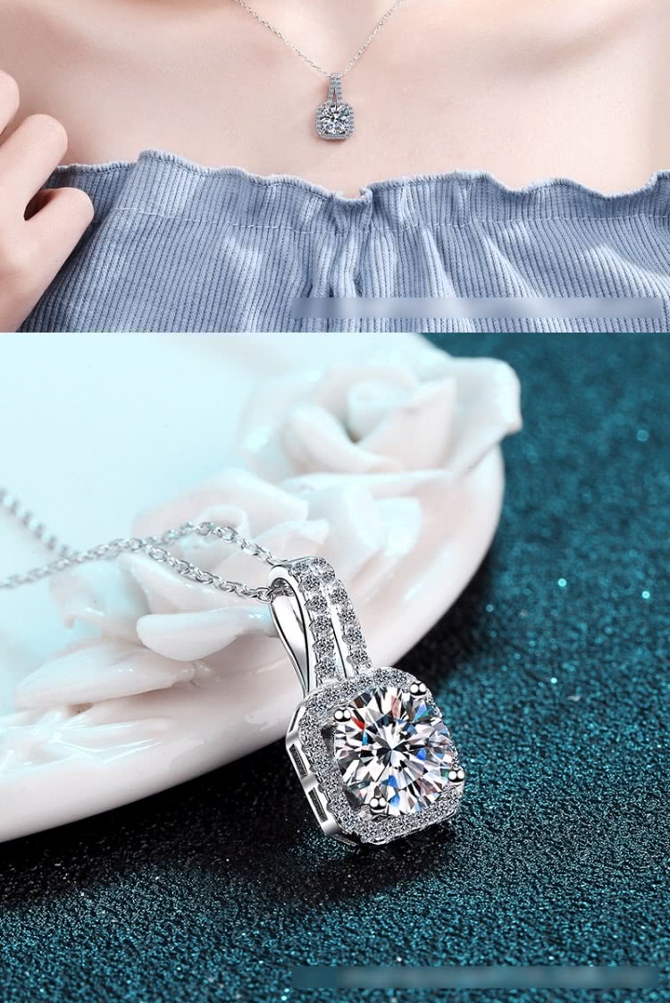 【巴黎精品】現貨+預購 莫桑鑽石項鍊飾品配件925純銀項鍊(2克拉倒V款方形墜飾鎖骨鏈生日情人節禮物v1ae33)